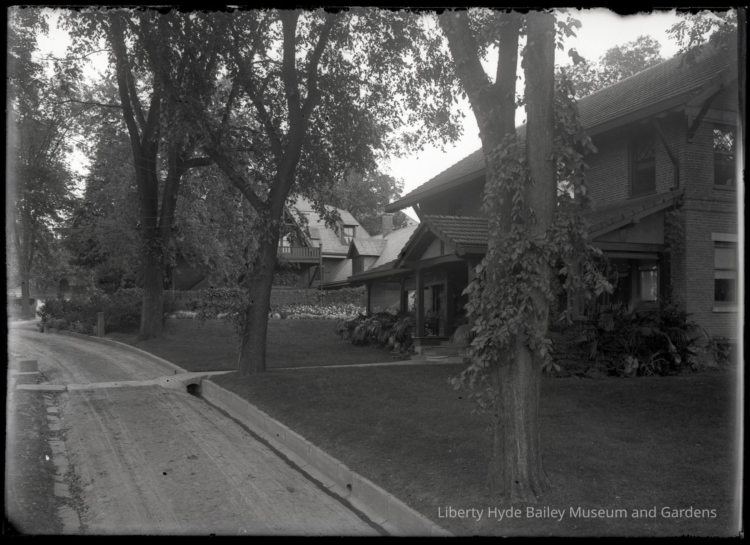 After the death in 1897 of Henry Sage, a wealthy benefactor of Cornell University, Bailey purchased a lot across the street from the house, which included Sage’s carriage house and adjoining greenhouses. With help from architecture professor Clarence Martin, Bailey designed his family’s home to be built alongside the greenhouse. Bailey helped design the house in the Craftsman style, highlighting the woodwork of the builders and featuring many built-in bookshelves and seating.