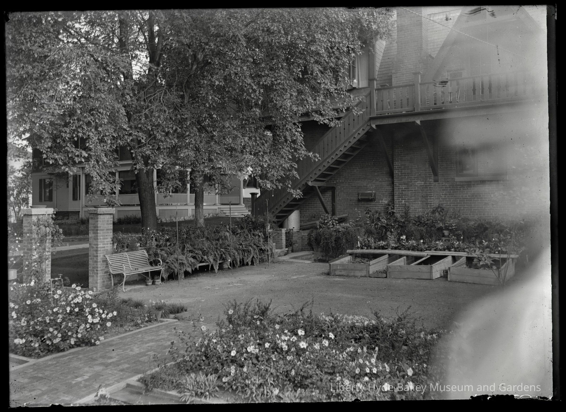 Sage Place- with blurred image of Liberty Hyde Bailey on the right in his patio garden.Photograph Details