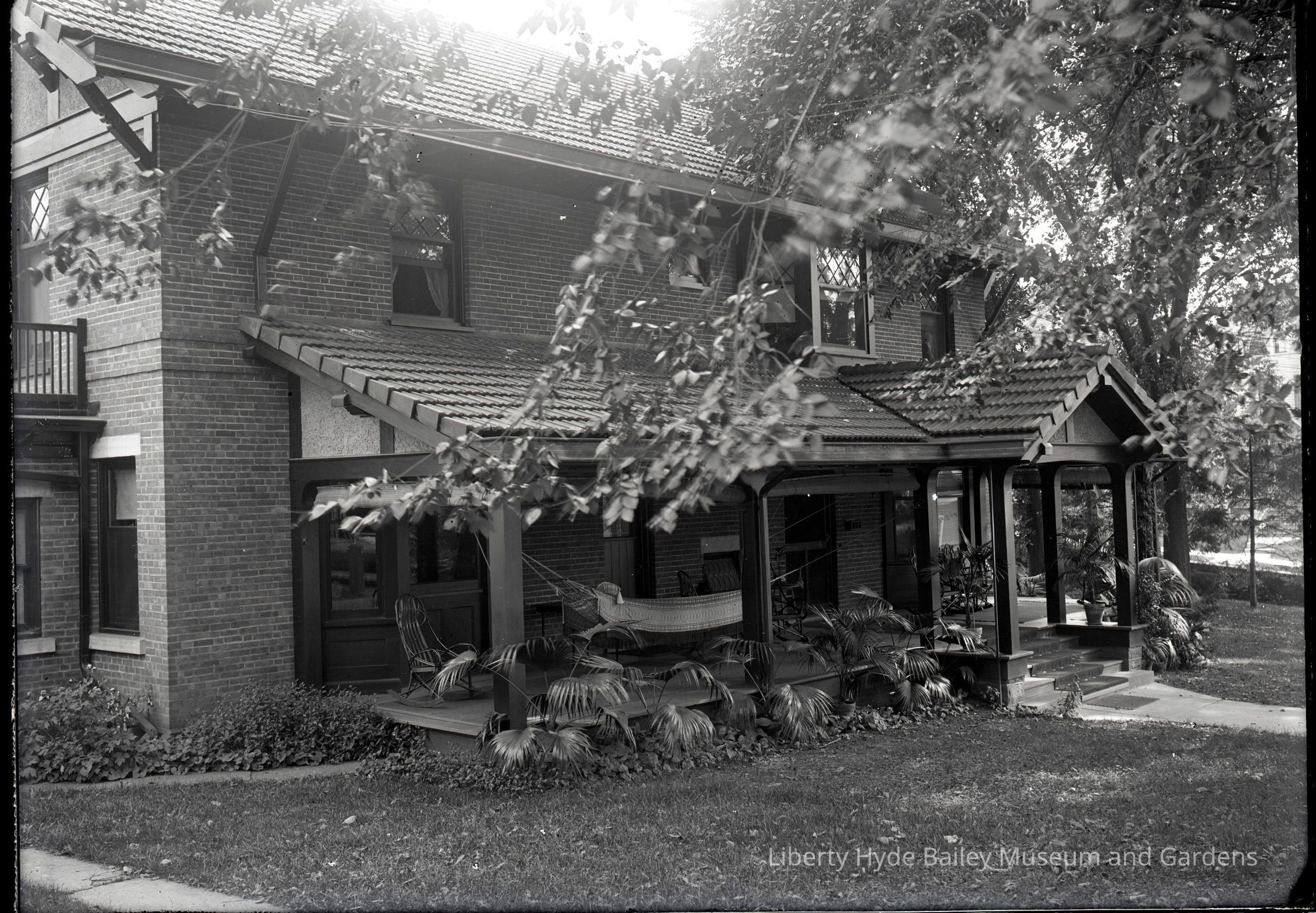 After the death in 1897 of Henry Sage, a wealthy benefactor of Cornell University, Bailey purchased a lot across the street from the house, which included Sage’s carriage house and adjoining greenhouses. With help from architecture professor Clarence Martin, Bailey designed his family’s home to be built alongside the greenhouse. Bailey helped design the house in the Craftsman style, highlighting the woodwork of the builders and featuring many built-in bookshelves and seating.