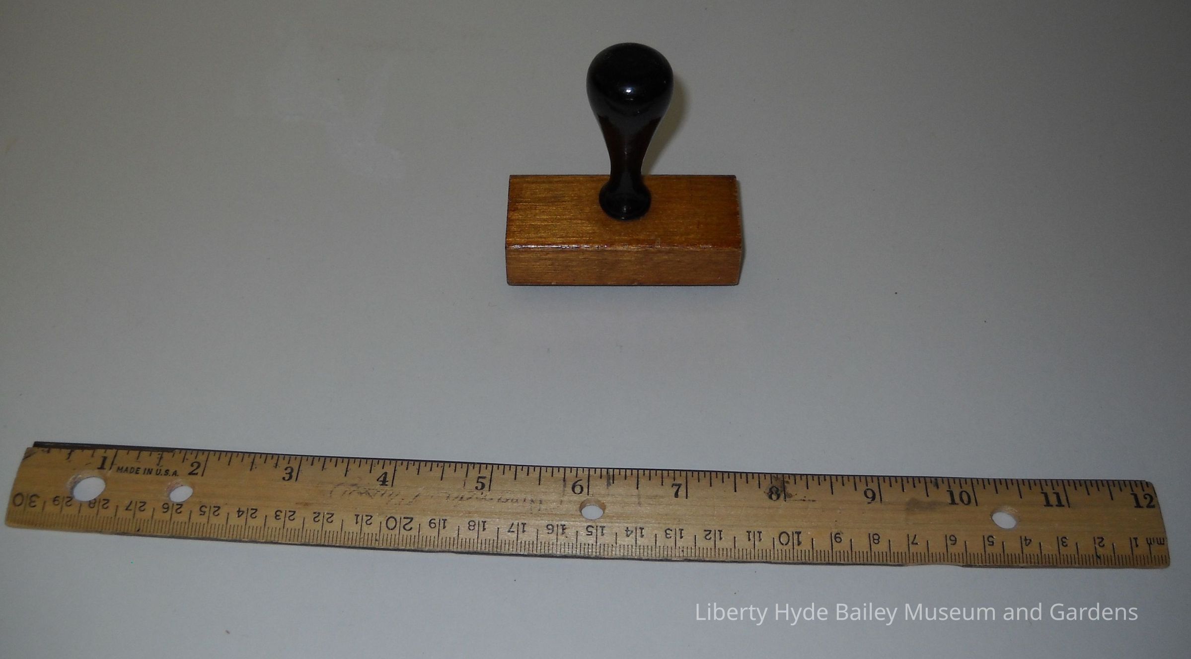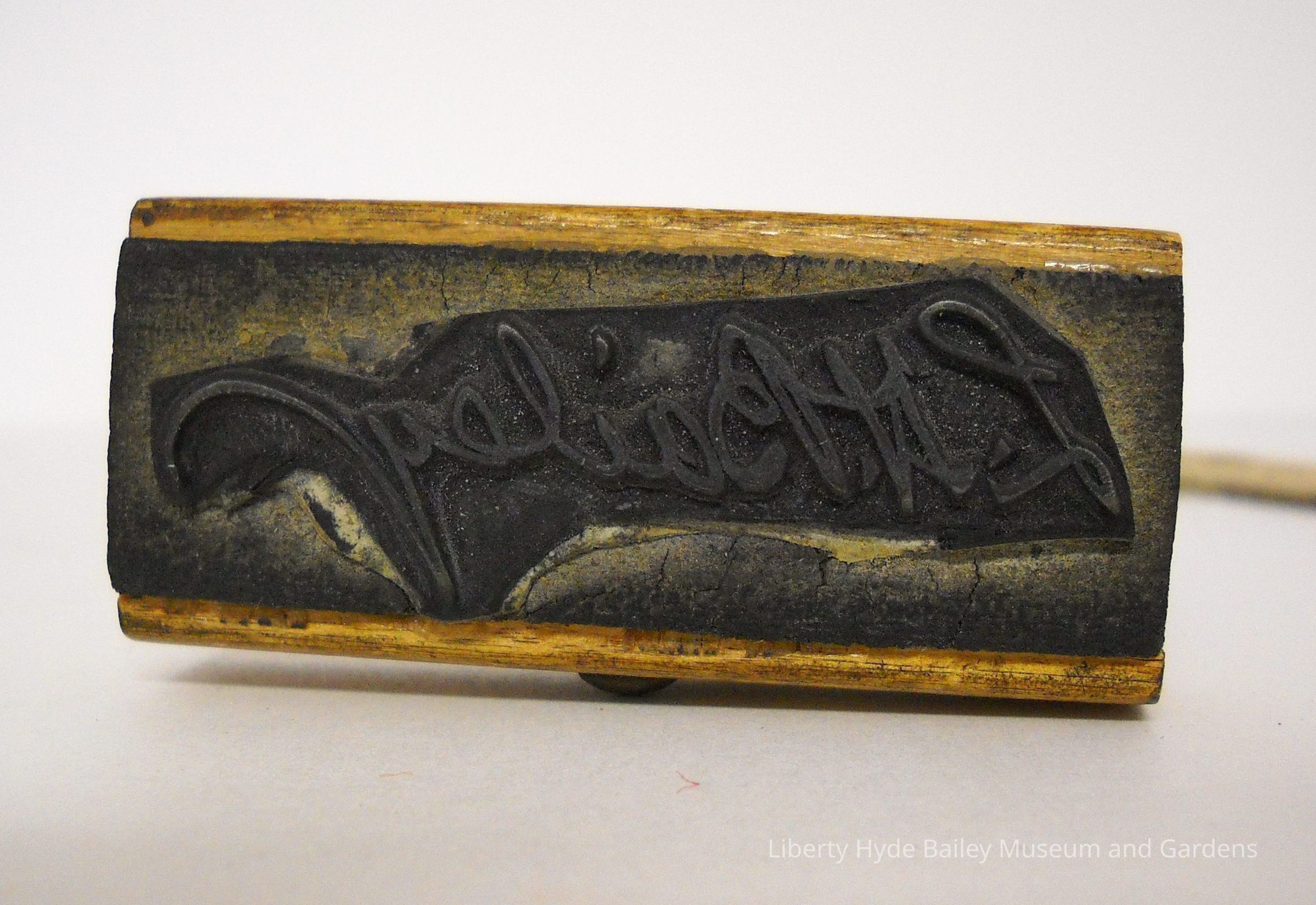 Stamp of Dr. Bailey's signature reads: "L.H. Bailey". 2 1/2 inches by 1 inch. Wood with metal face.Collection
