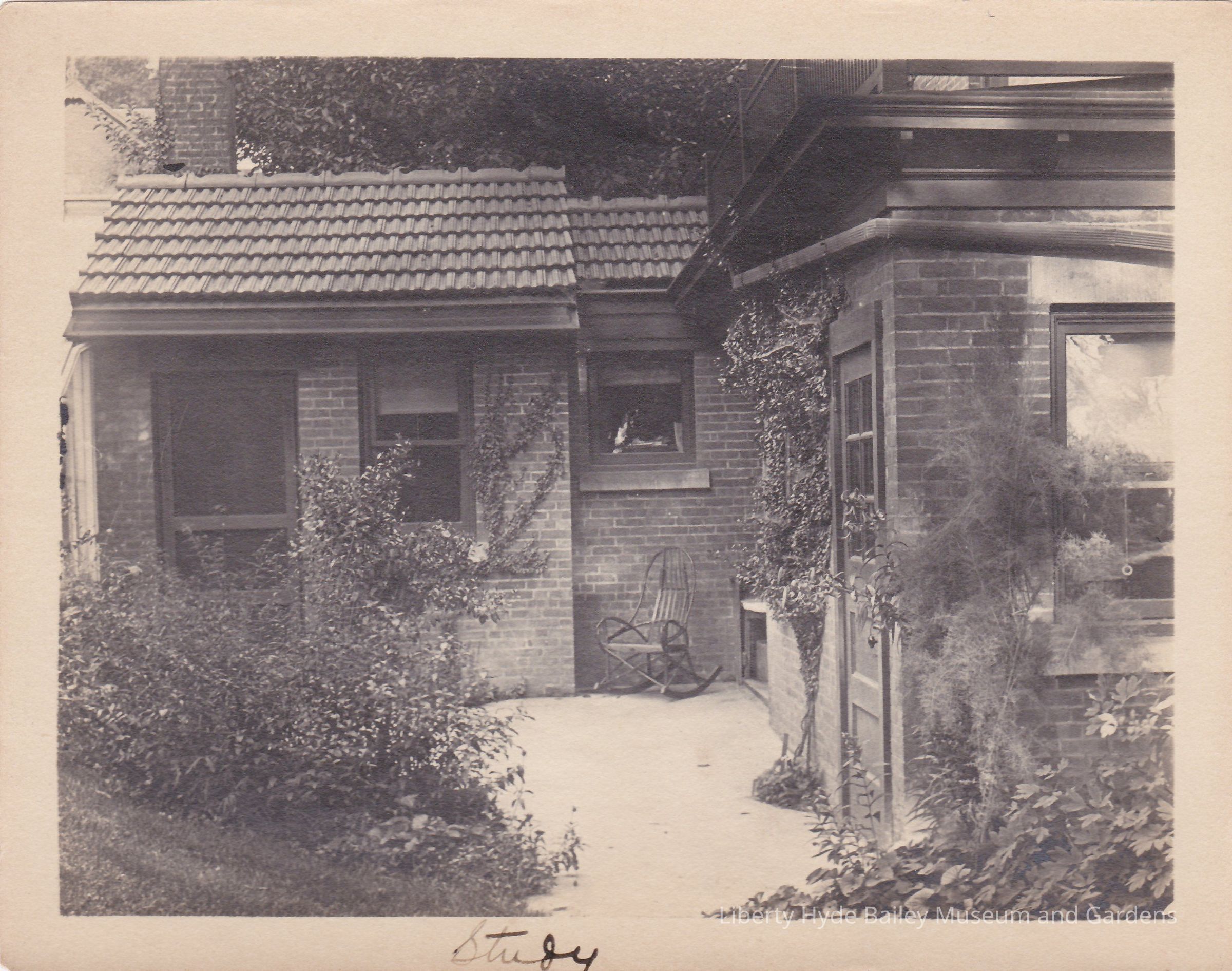 After the death in 1897 of Henry Sage, a wealthy benefactor of Cornell University, Bailey purchased a lot across the street from the house, which included Sage’s carriage house and adjoining greenhouses. With help from architecture professor Clarence Martin, Bailey designed his family’s home to be built alongside the greenhouse. Bailey helped design the house in the craftsman style, highlighting the woodwork of the builders and featuring many built-in bookshelves and seating.