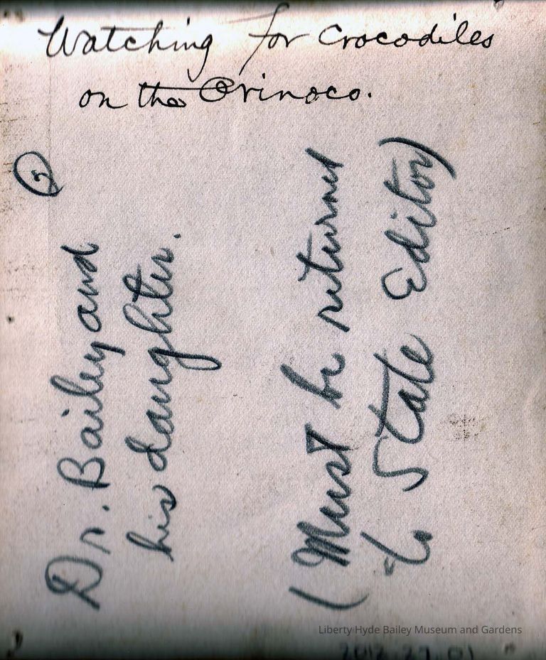 This image also appears in Cornell University's online exhibit, Liberty Hyde Bailey - A Man for All Seasons. They title the image, "Ethel Zoe Bailey and Liberty Hyde Bailey on the Orinoco River in Venezuela" dating it 1927.