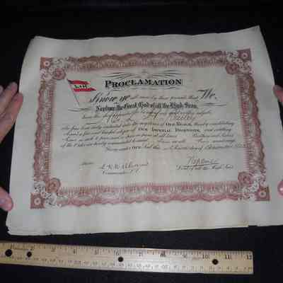 Certificate for "Neptune, the Great God of all the High Seas"