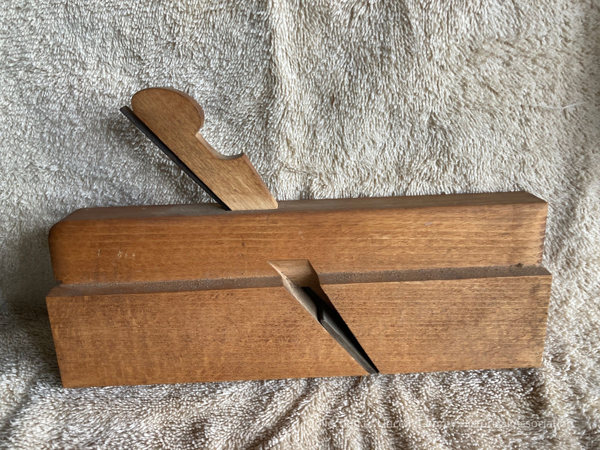 Beech wood hollow concave moulding plane. Also described as a "round plane." Its iron blade ends with a steel cutting edge. This plane is designed to cut a 1 and 1/8th inch mould.Made/Created