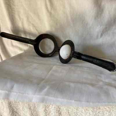 Two handled cast iron squeezer with a half circle ceramic ball