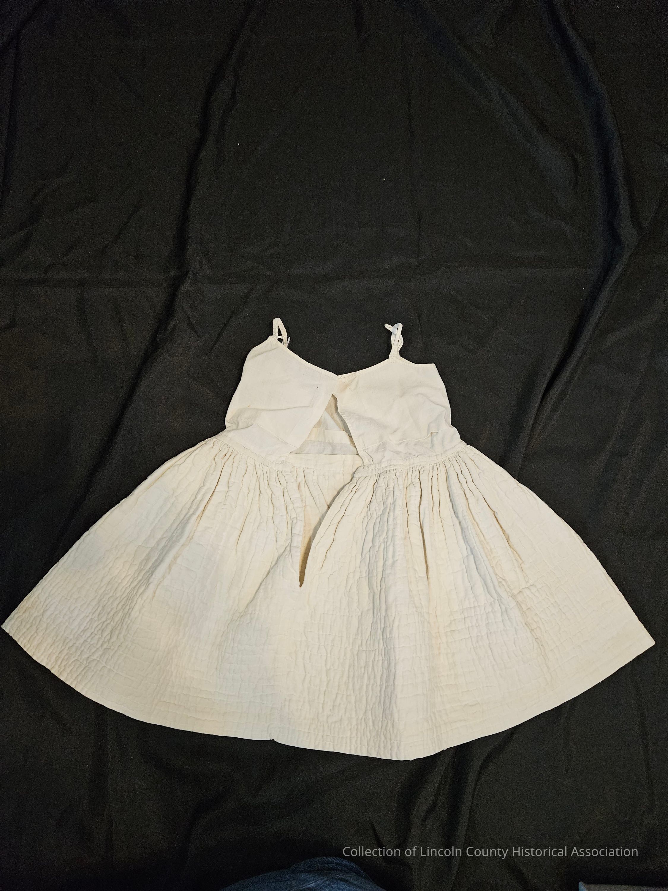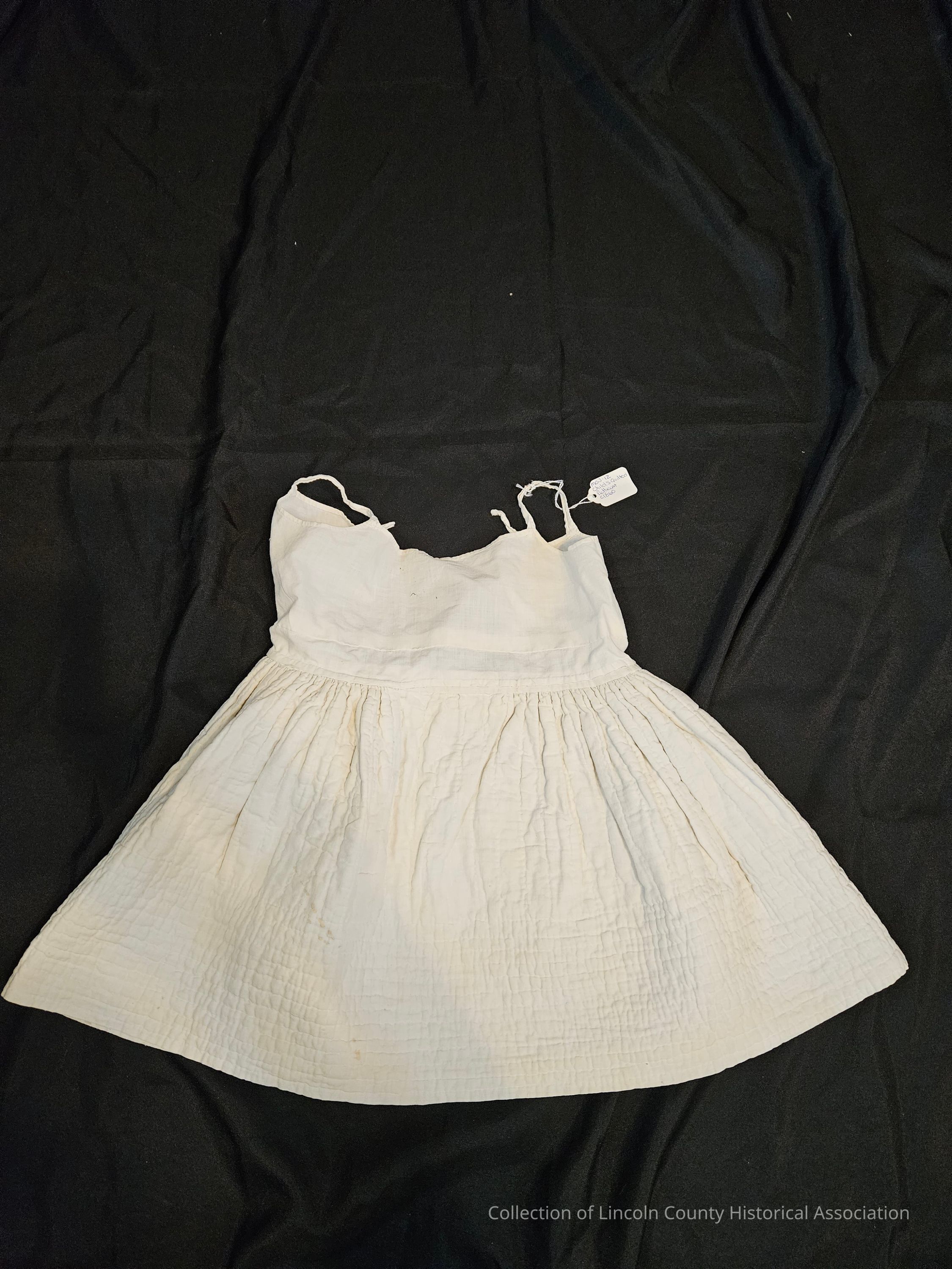 Child's white quilted petticoat. Plain cotton on top. Machine stitched. "V" Shaped opening in back.Clothing/Dress/Costume Details