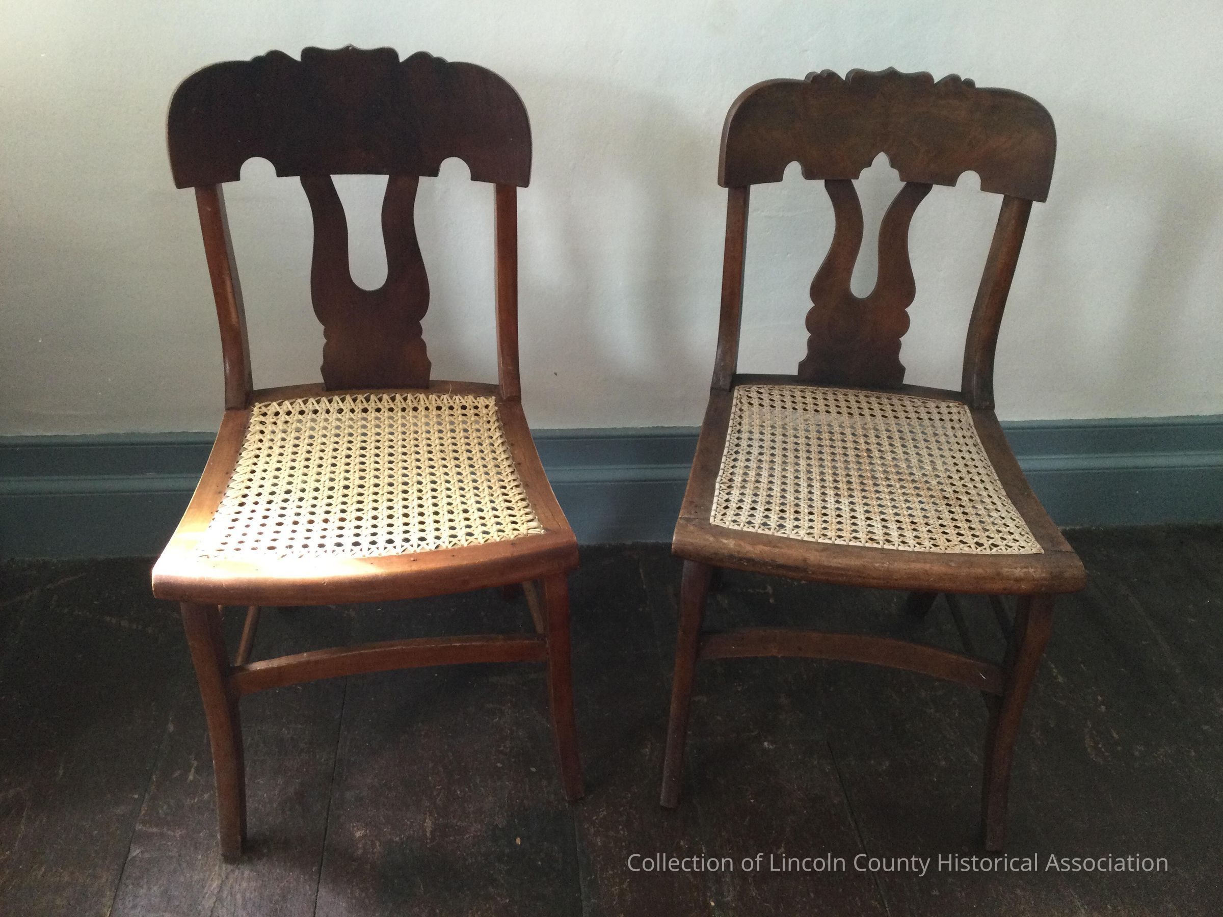 Lyreback splat with wide carved crest rail. Flat legs curve inward with curved front stretches.Made/Created