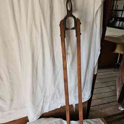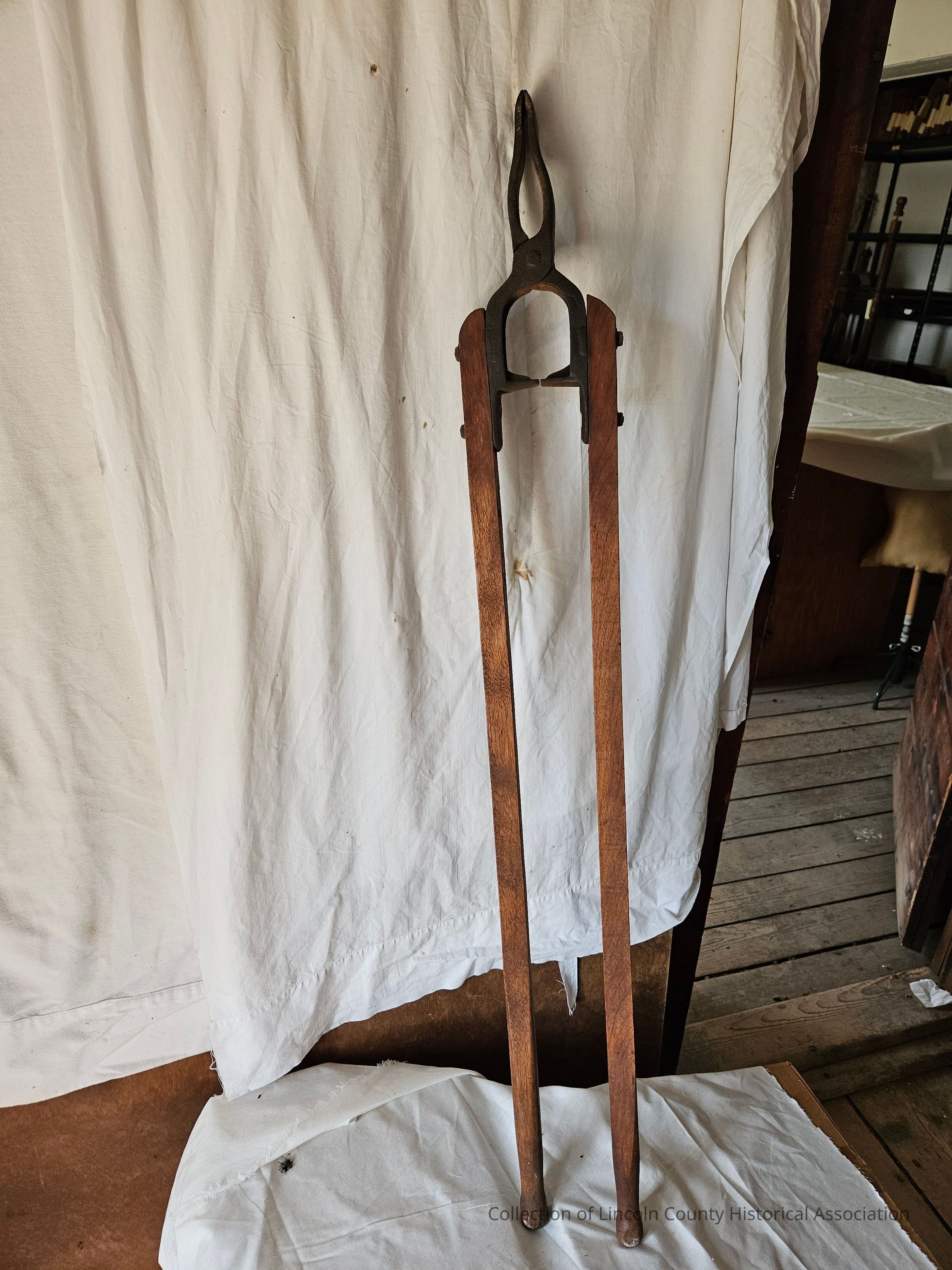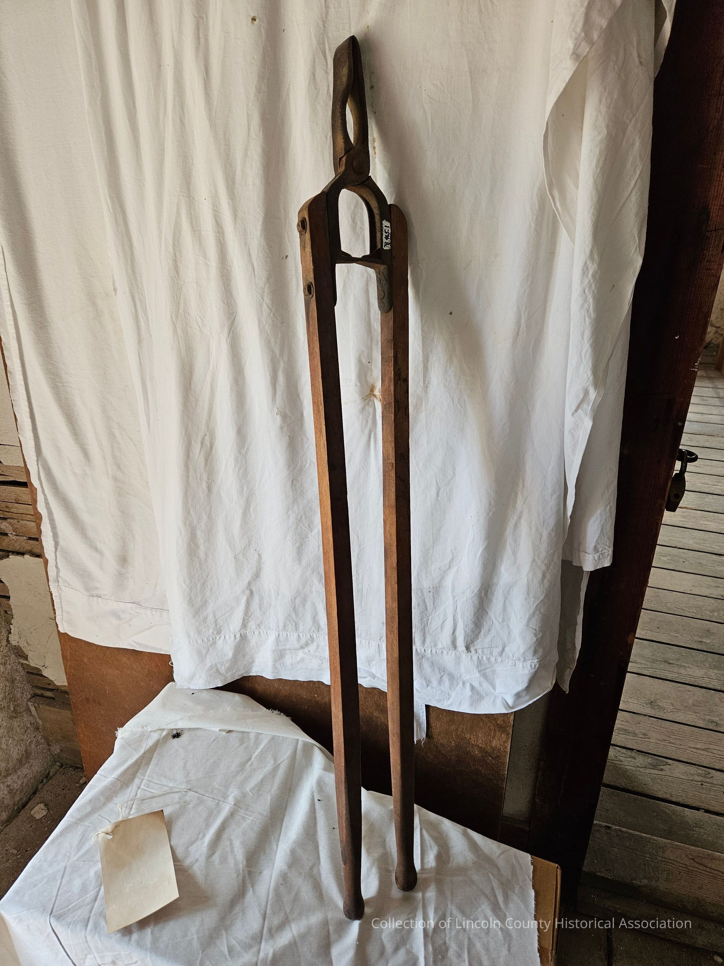 Riveted iron clinchers with hardwood handles. Shaped like blacksmith's tongs.