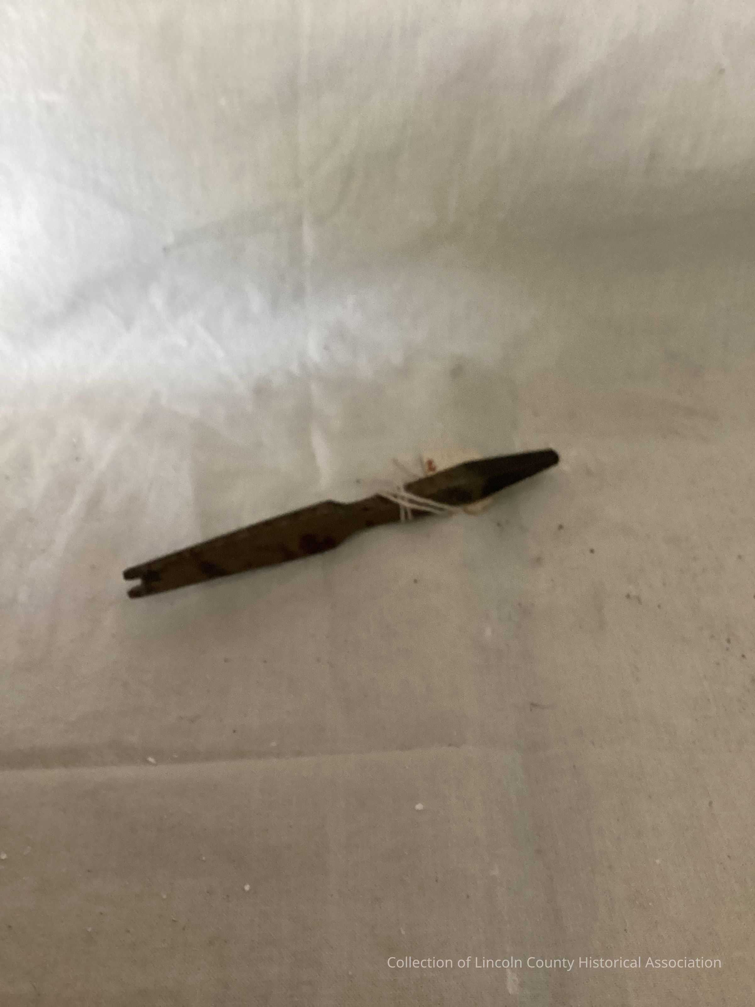 Steel drill bit. Screwdriver bit for a slotted screw. 3/8th of an inch bite. Two pronged flat blade projections.Made/Created