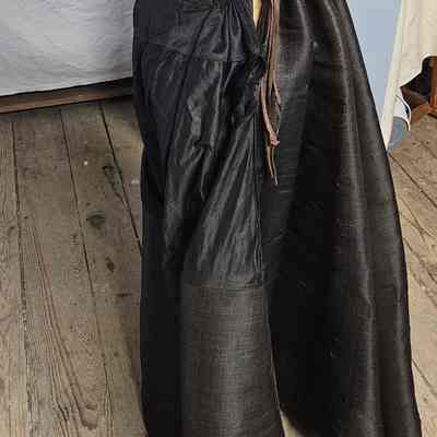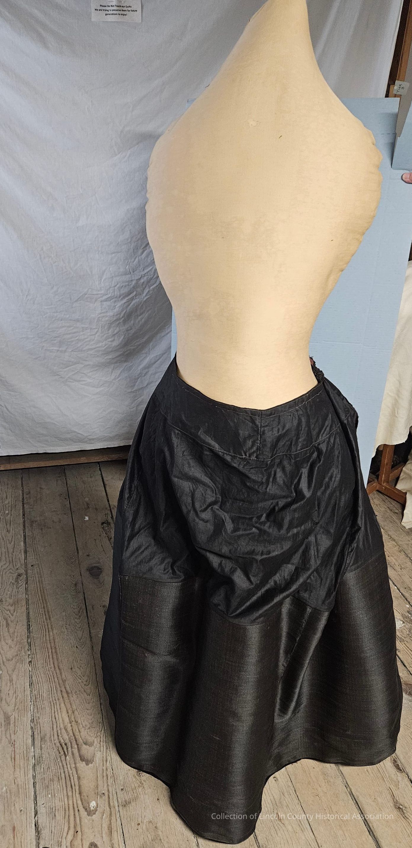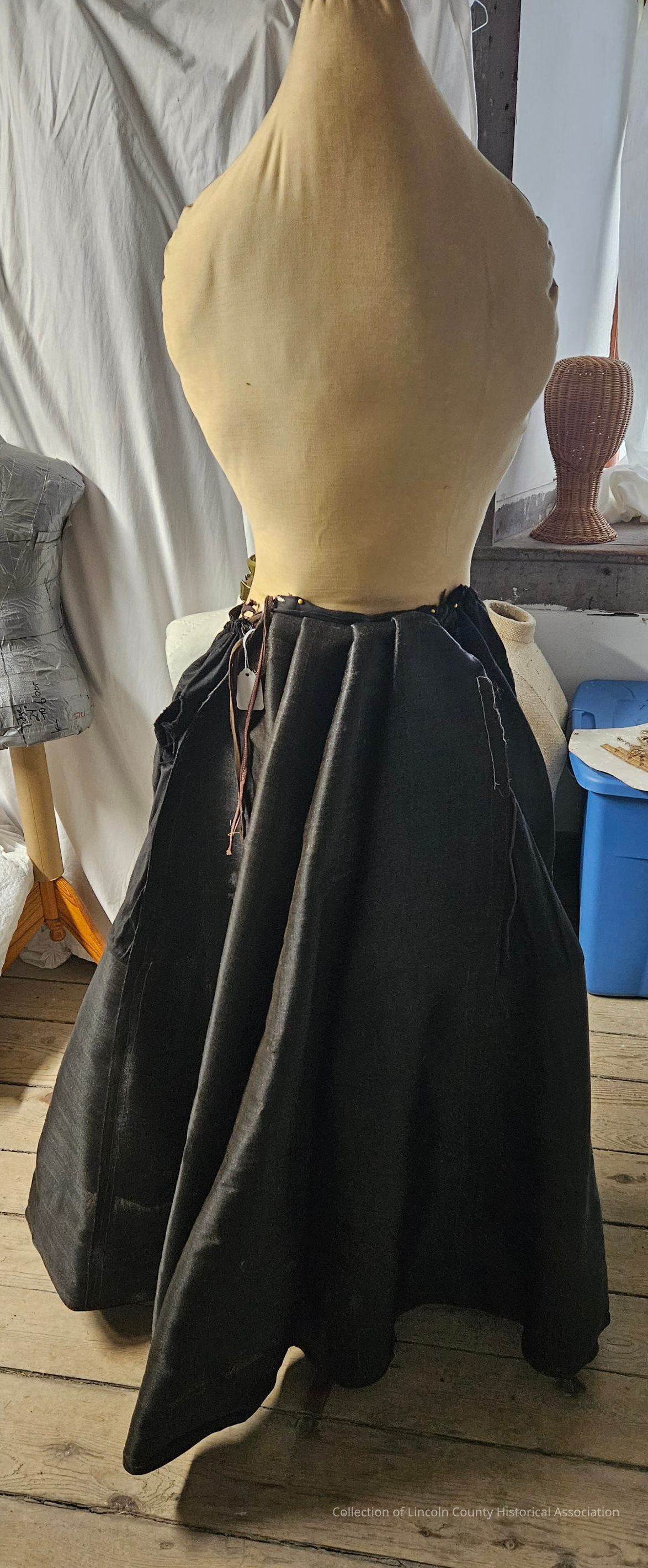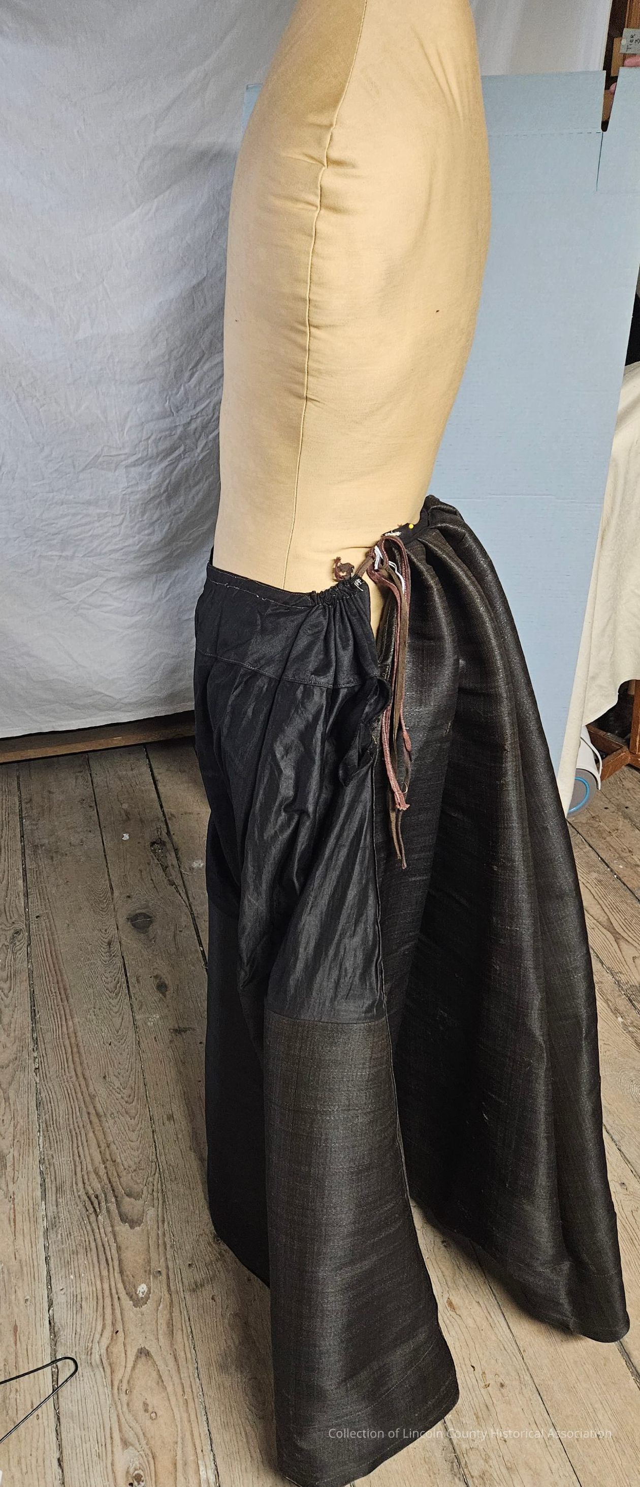 Black horsehair petticoat. Front panel at the top is made of cotton. Adjustable string at waist. Bustle in the back.Clothing/Dress/Costume Details