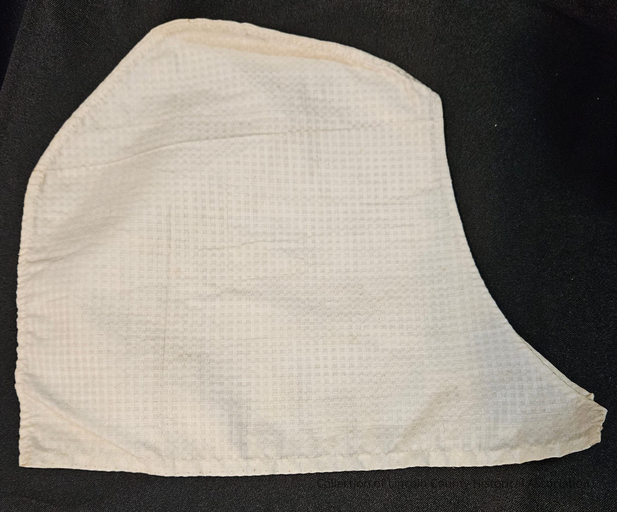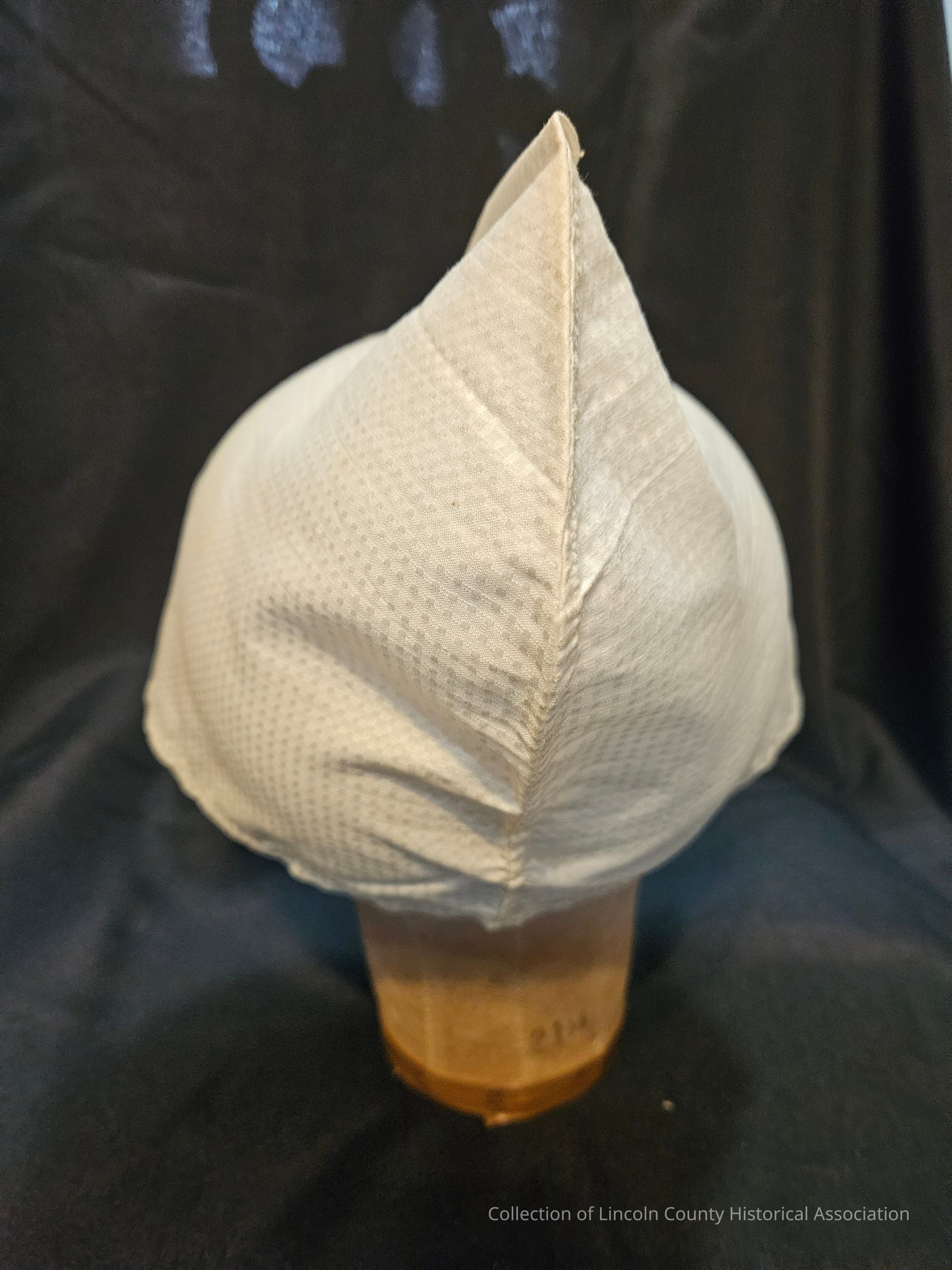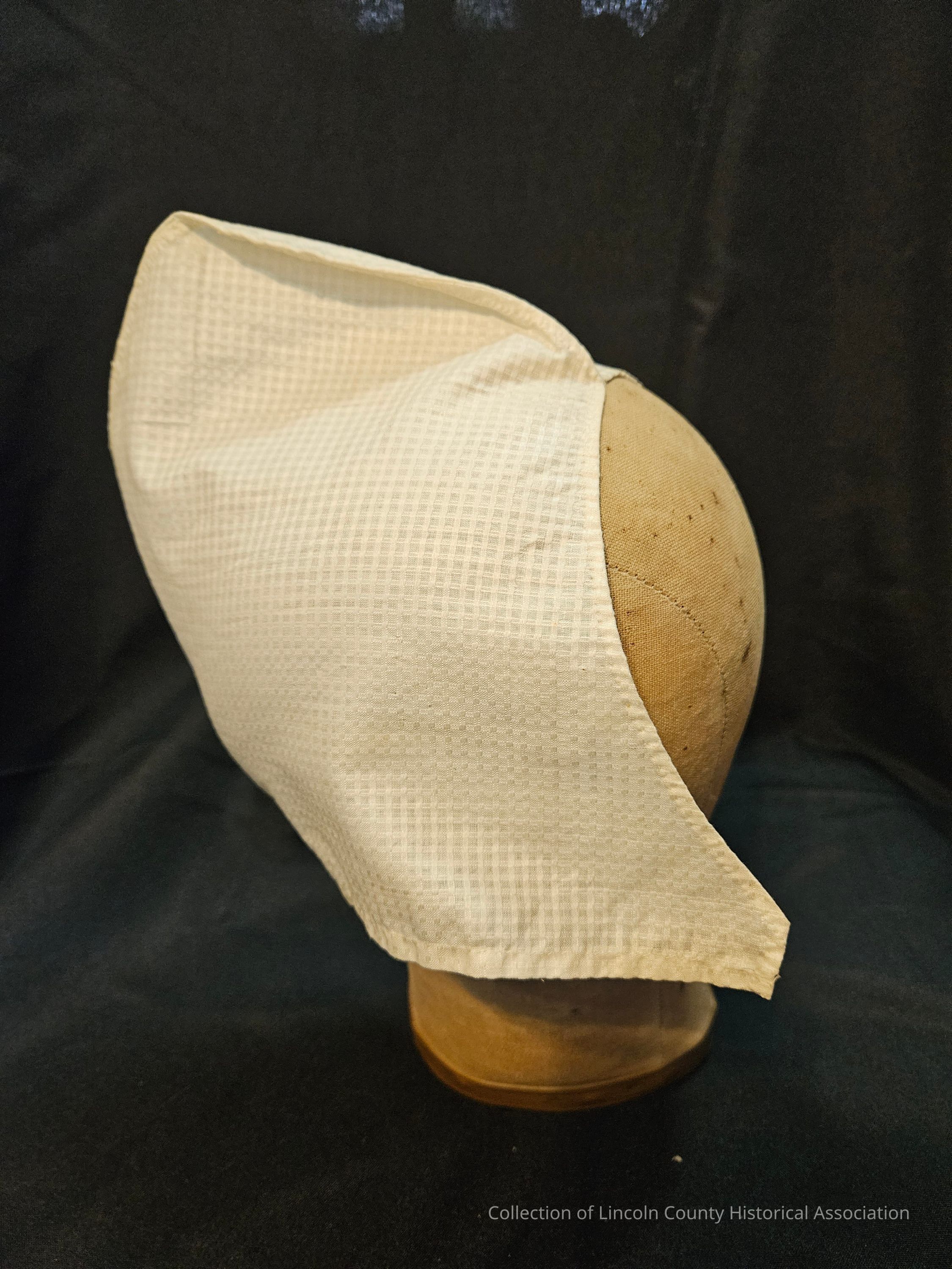 Cross barred hand-stitched cotton cap. One seam from center forehead to center back.Clothing/Dress/Costume Details