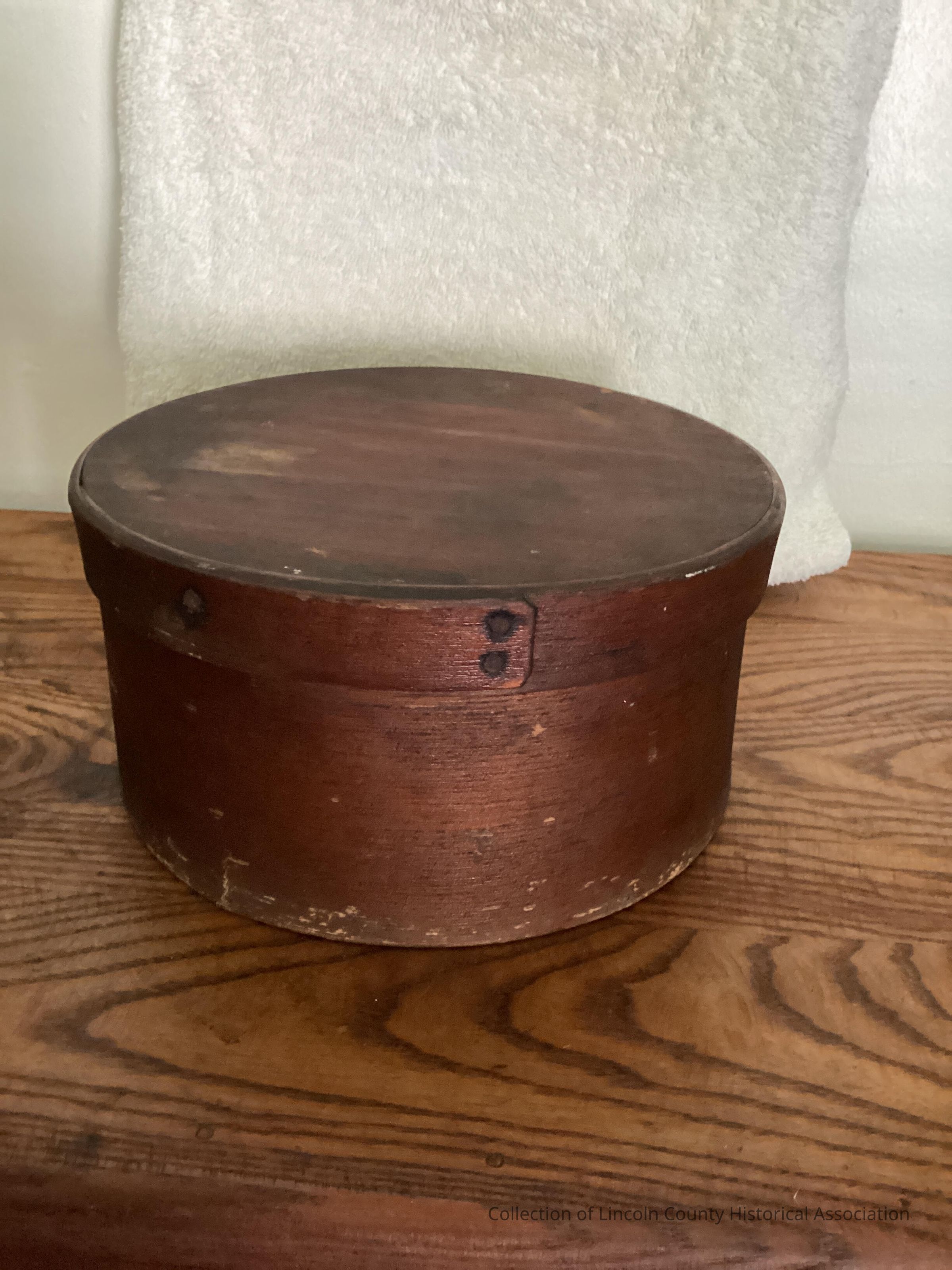Wooden pantry box with its lid. Straight lap construction.Made/Created