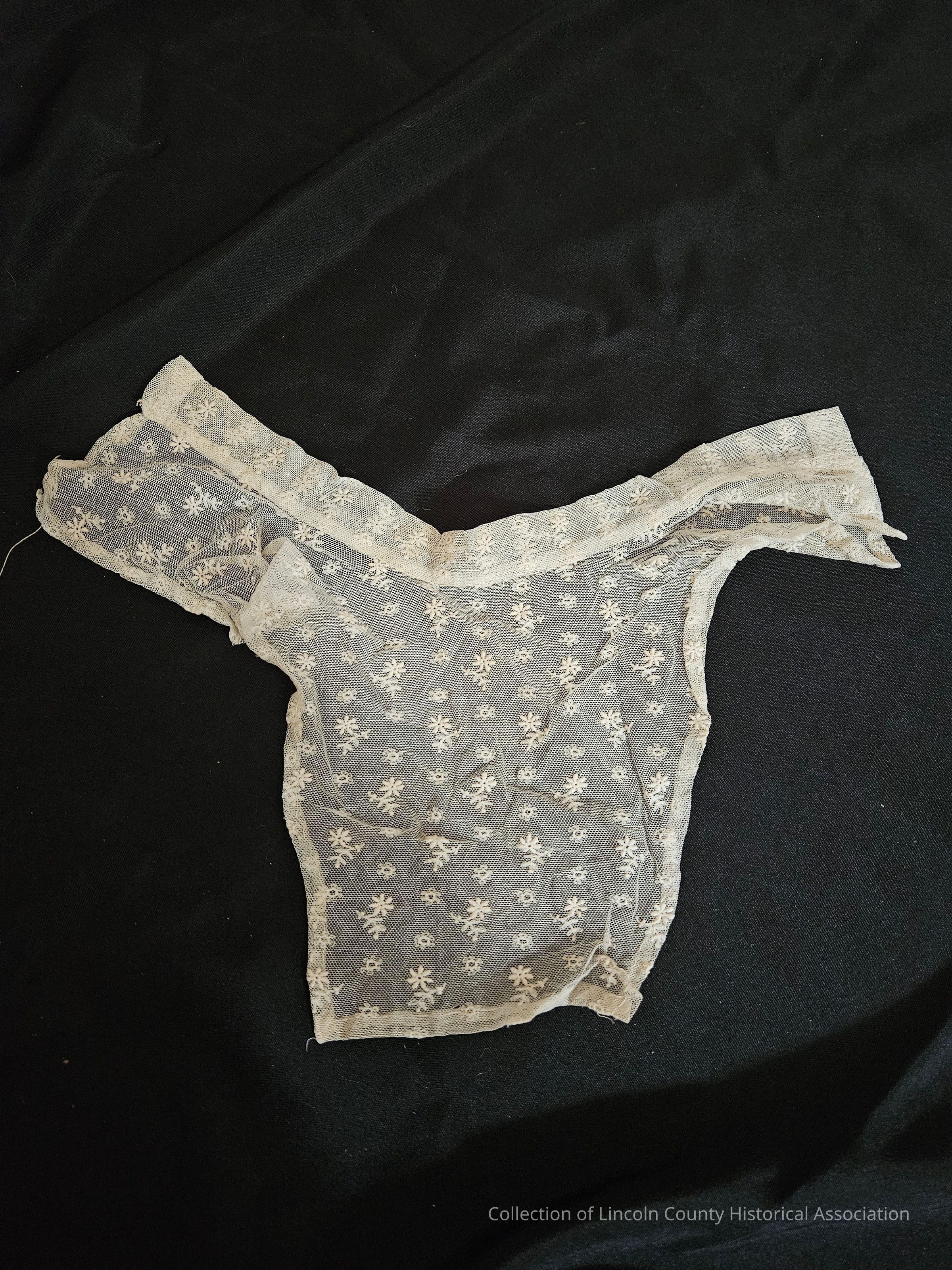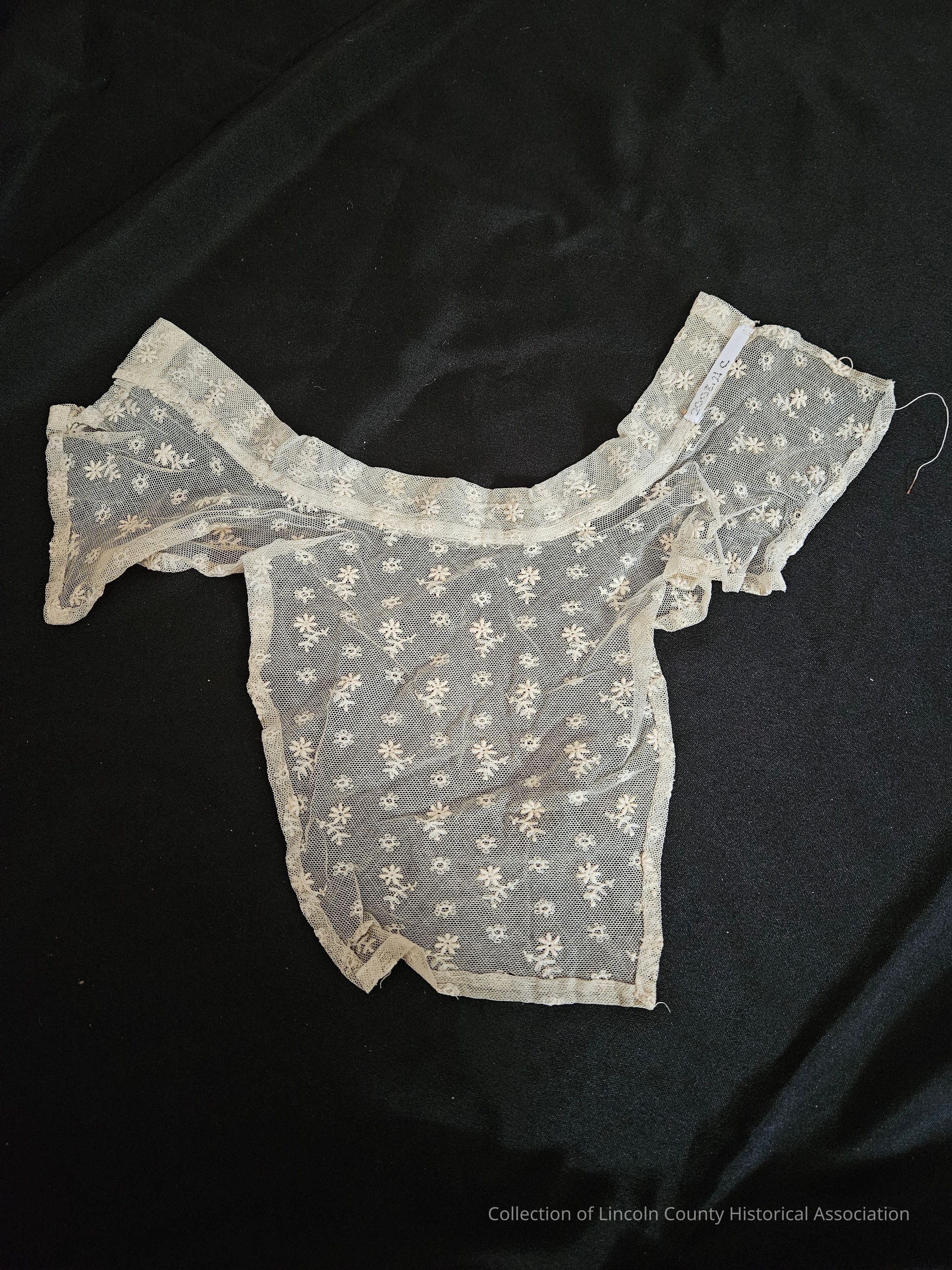 Net jabot with small embroidered flowers. Hand stitched.Clothing/Dress/Costume Details