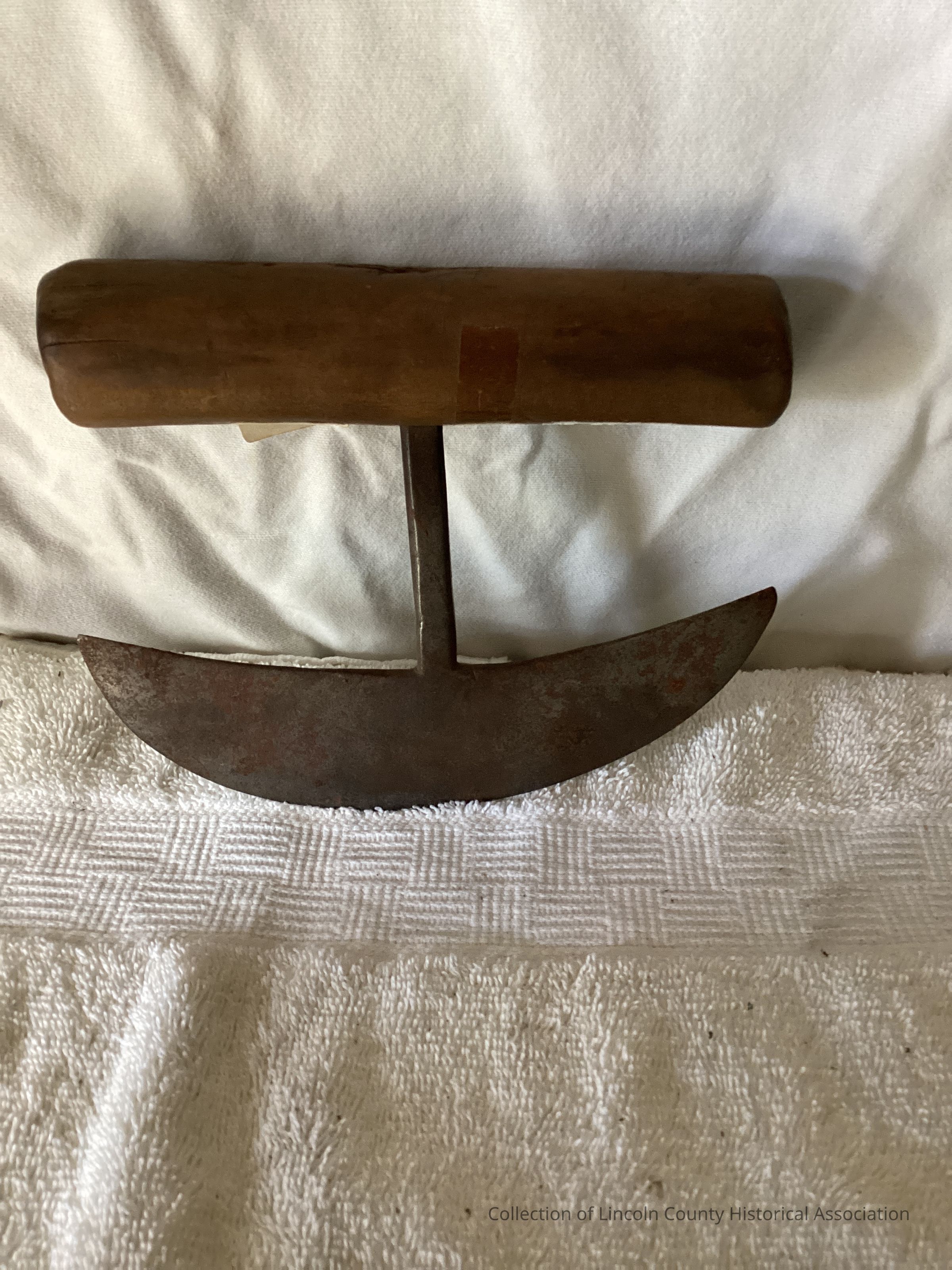 Single-bladed, crescent-shaped food chopper with wooden handle