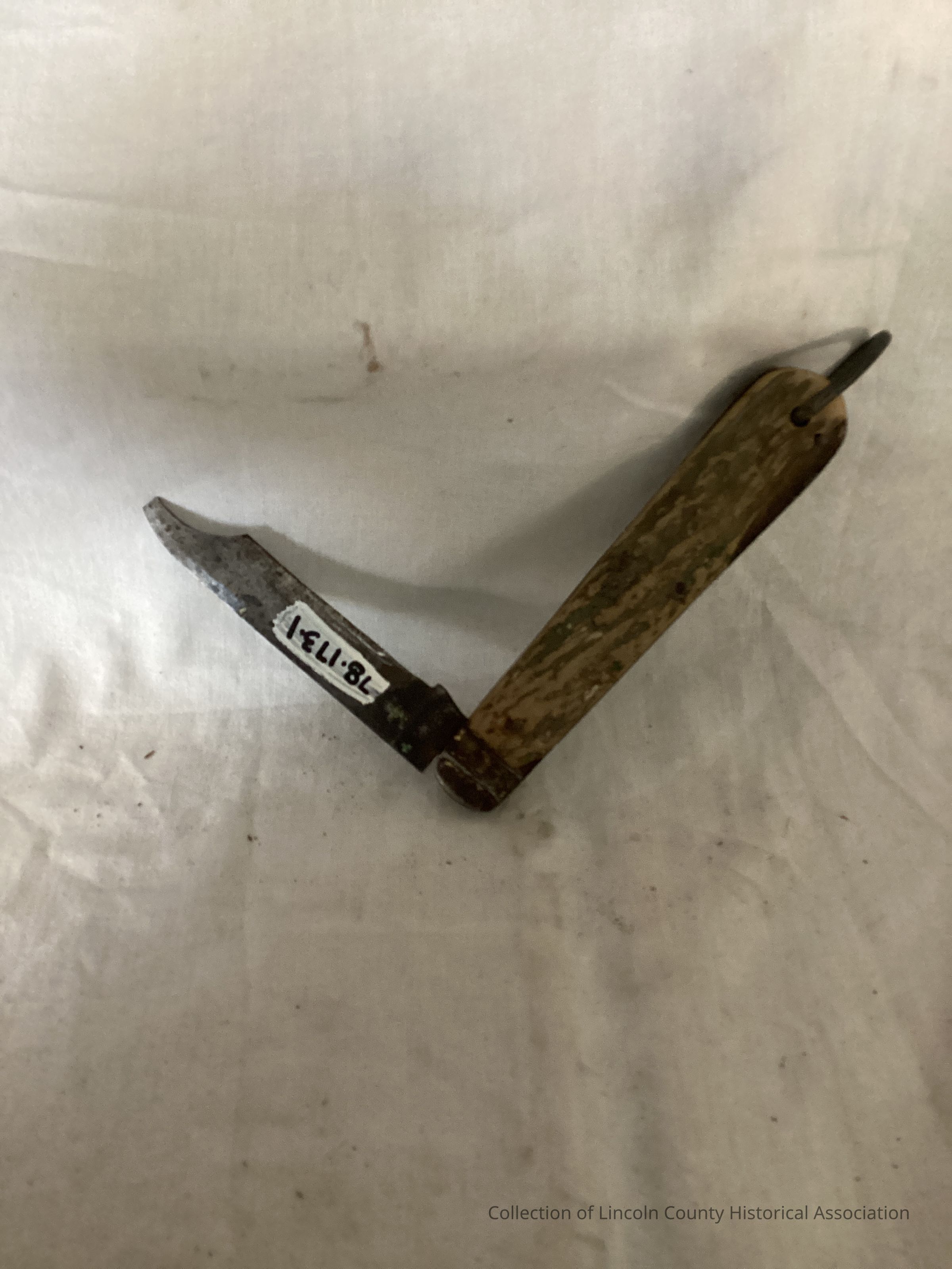 Steel and bone jack knife. Single bladed. Bone handle with ring on end.