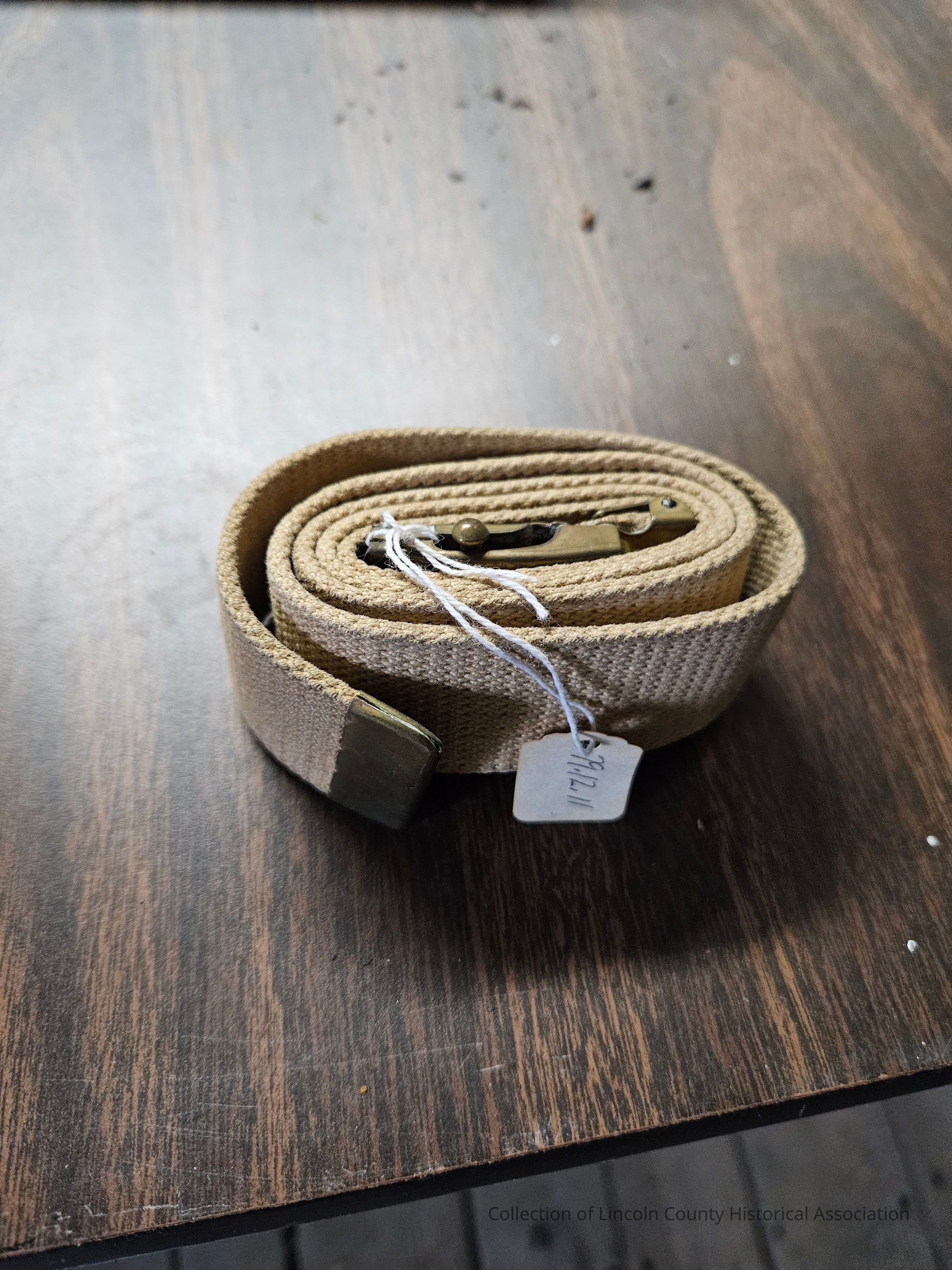 World War II belt. Tan web belt with brass buckle. Owned and likely worn by Daniel S. Pratt, who was a Staff Sergeant in the 9th Infantry Division during World War II.Made/Created