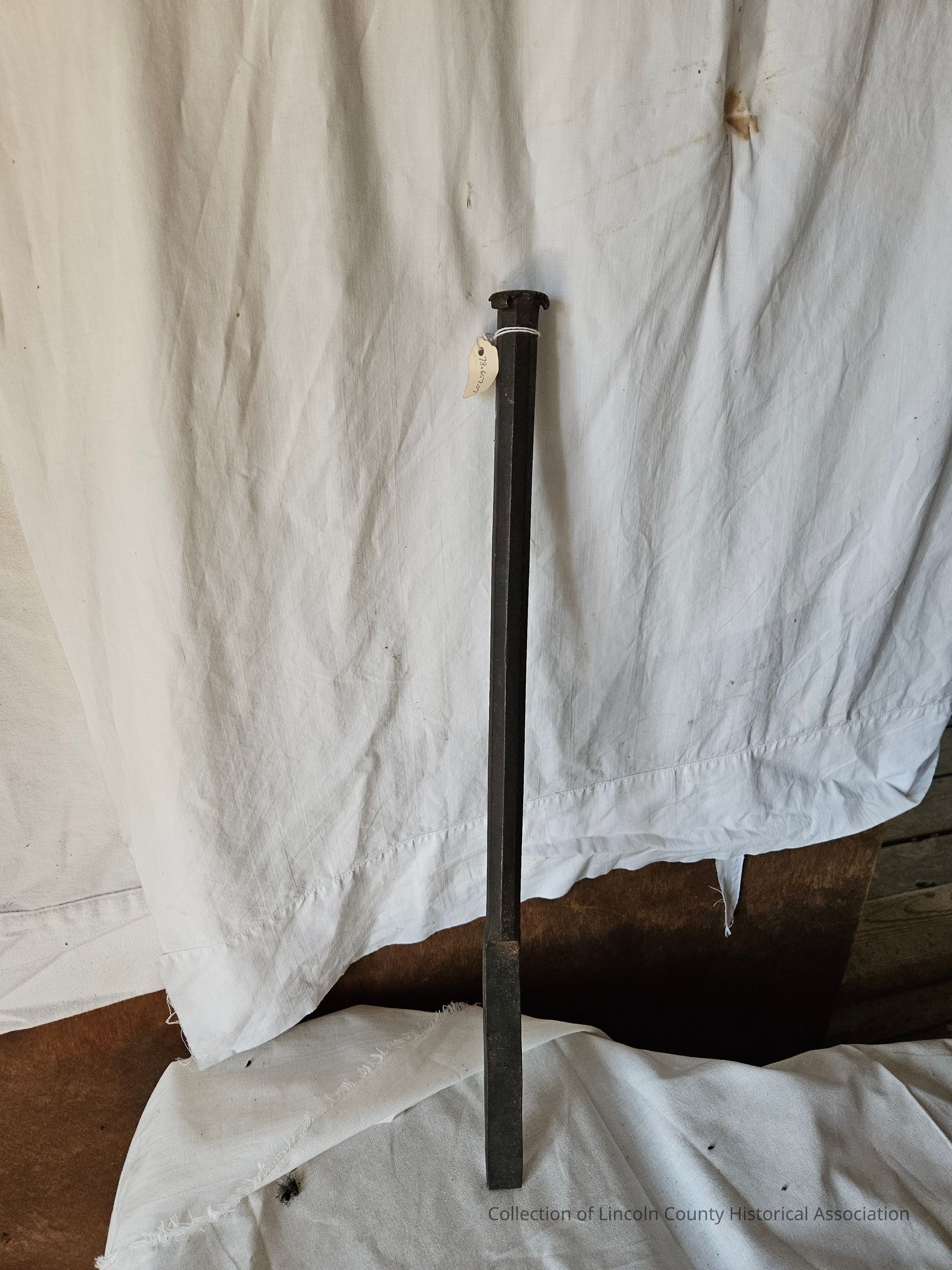 Pry bar. Iron shaft ending in a flat spoon. Handle octagonally shaped with a flattened end.