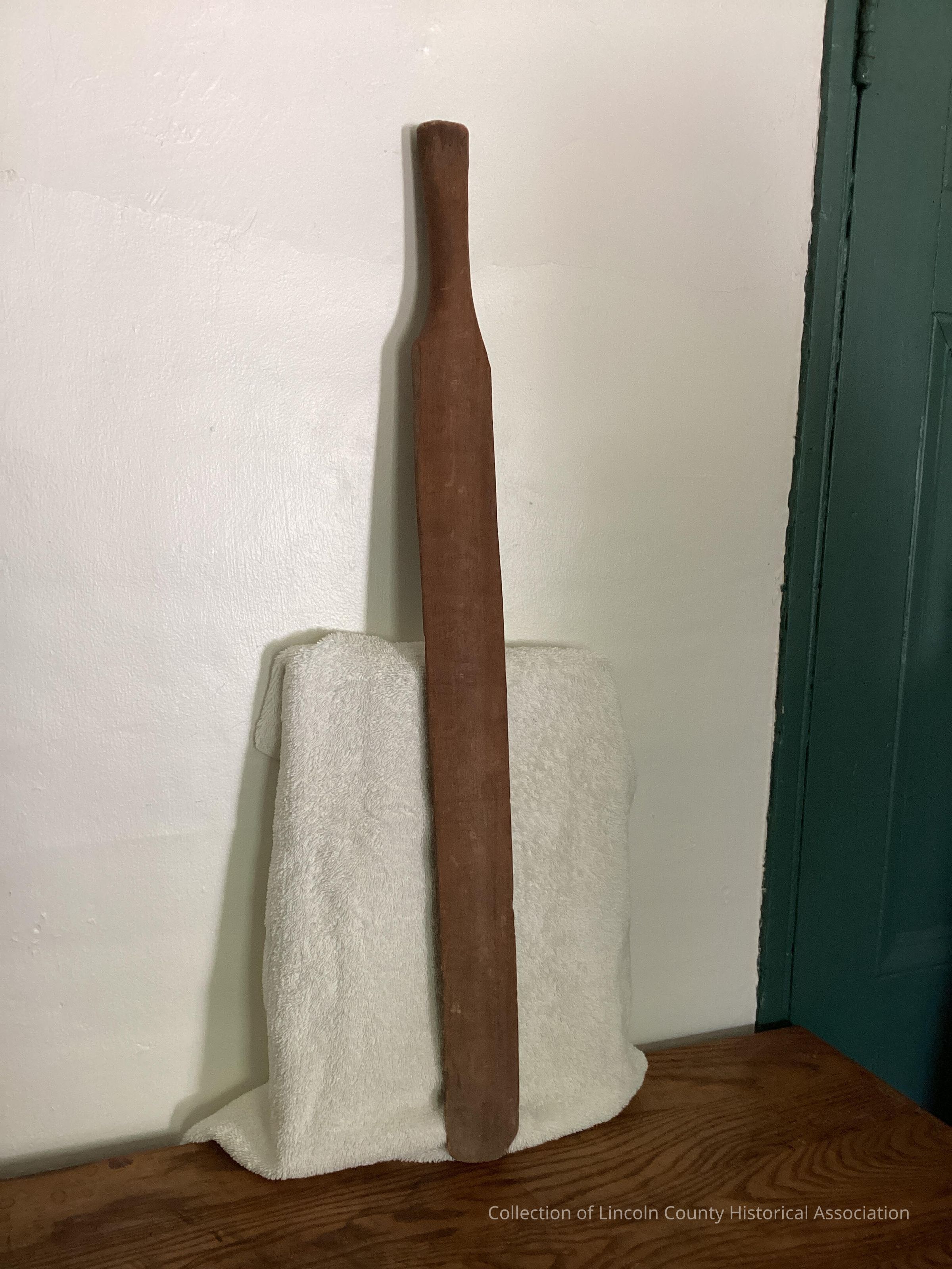 Wooden apple butter paddle. Has a tapered rounded handle. Also known as a flail.Made/Created
