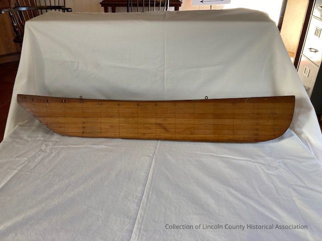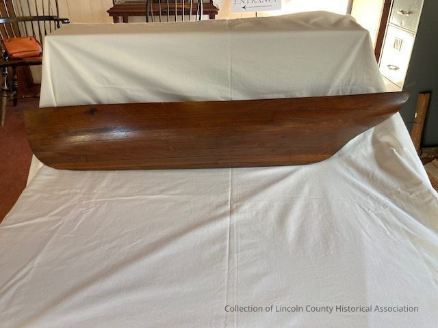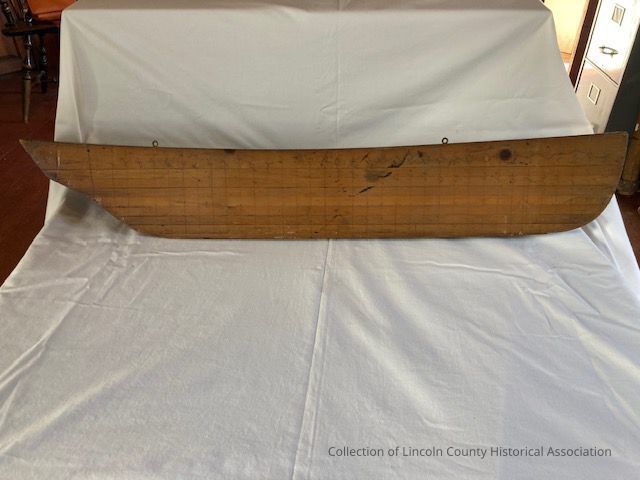 Pine half model of a wooden ship's hull. Varnished and mounted on a backing board.Made/Created