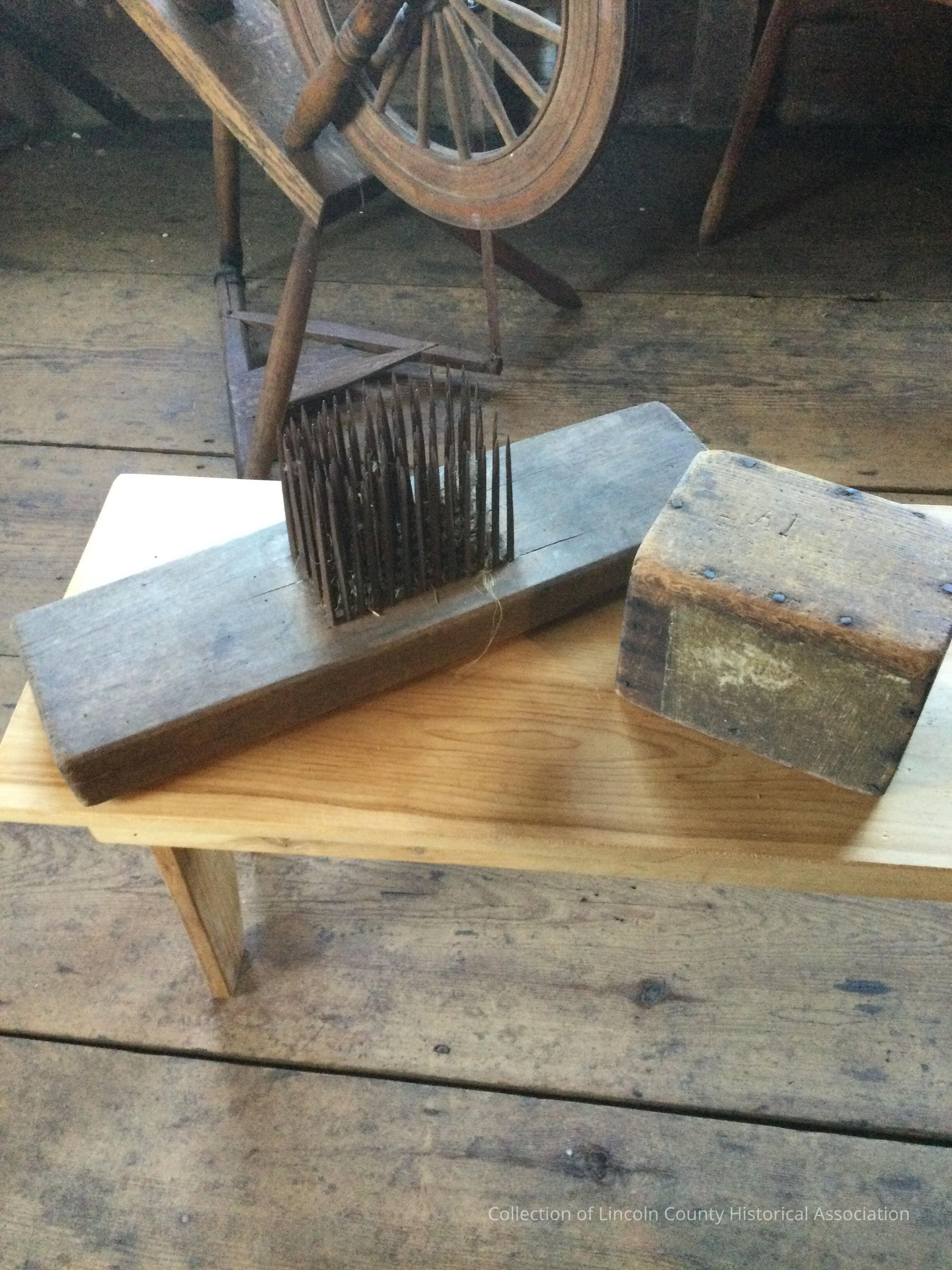 Spikes set into a wooden base. Five sided protective wooden cover.