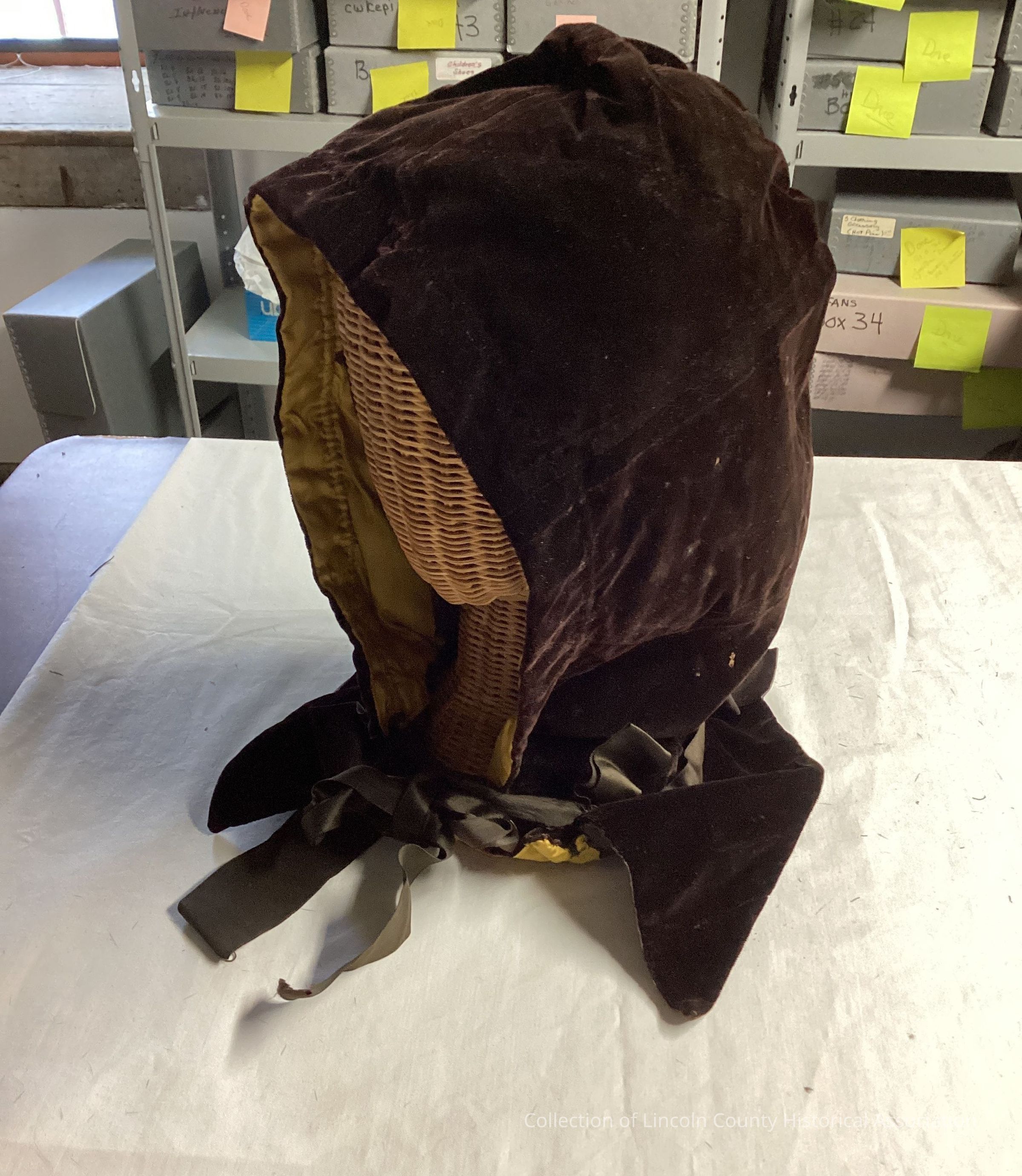 Brown velvet hood. Two brown silk ties.Clothing/Dress/Costume Details