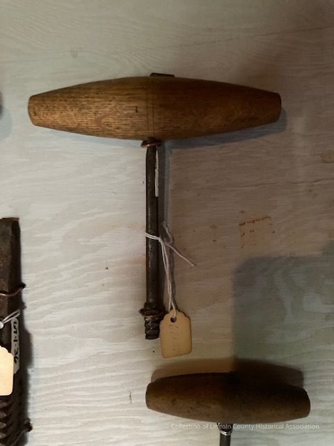Tap with thin iron shank ending in a squared end and with a wooden handle
