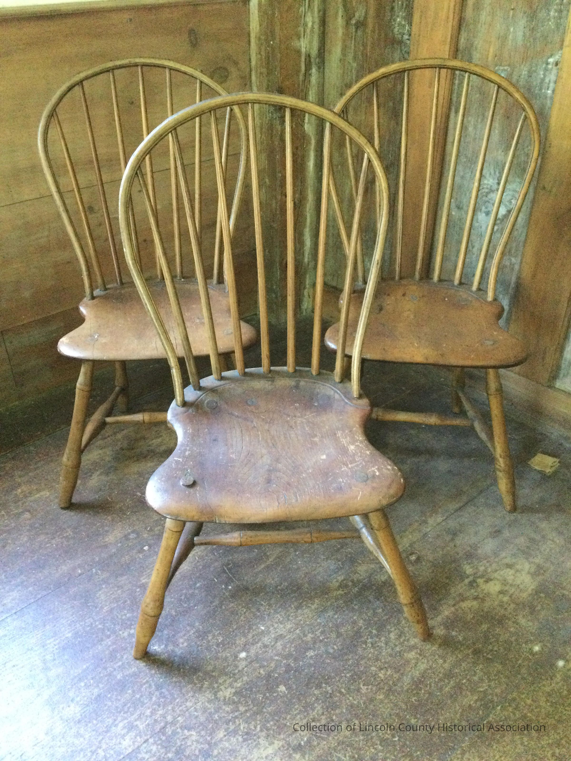 Three Windsor, hoop-back chairs, splayed tried legs and stretchers. Spindles are visible through the bow and seat.Made/Created