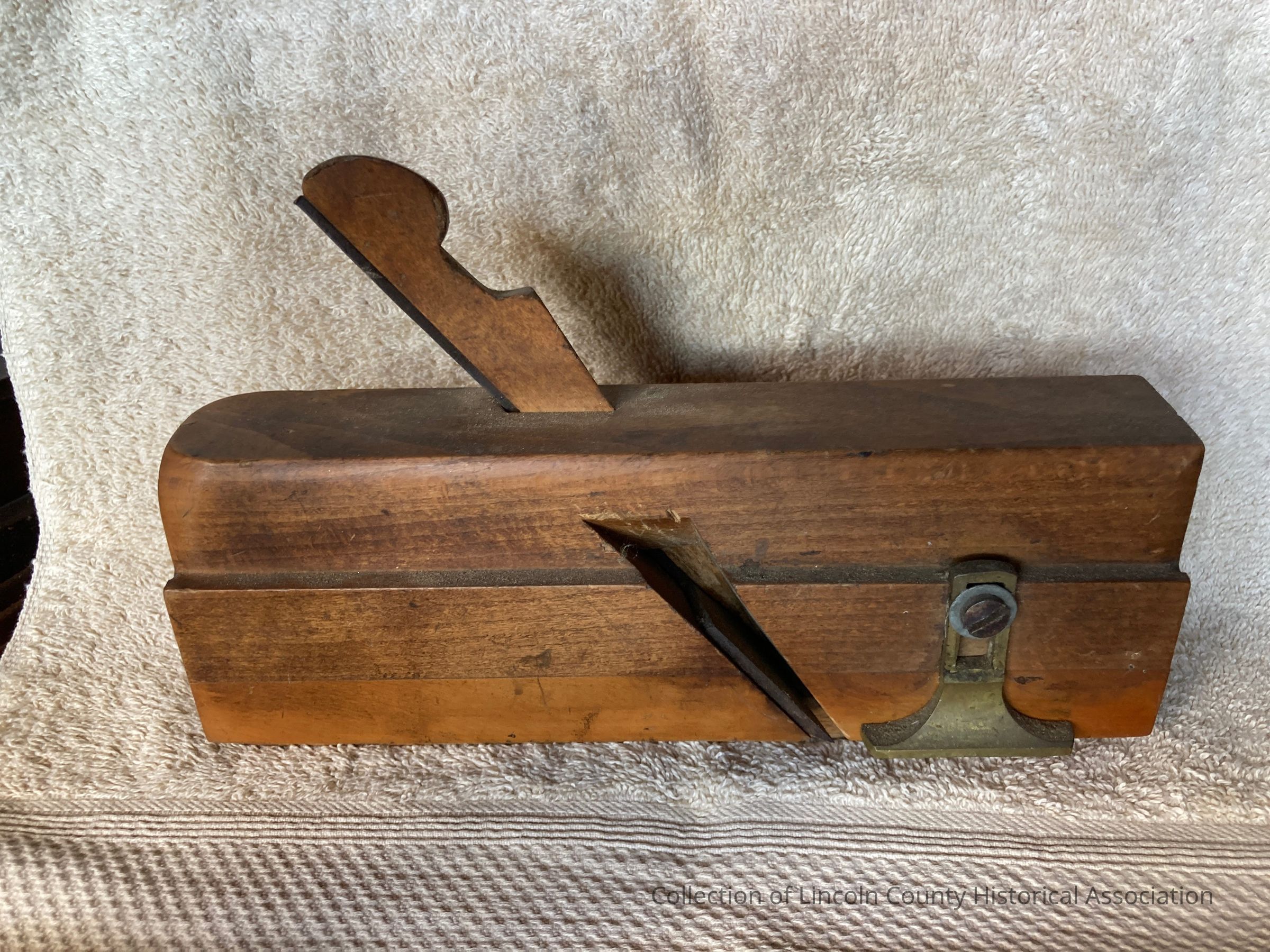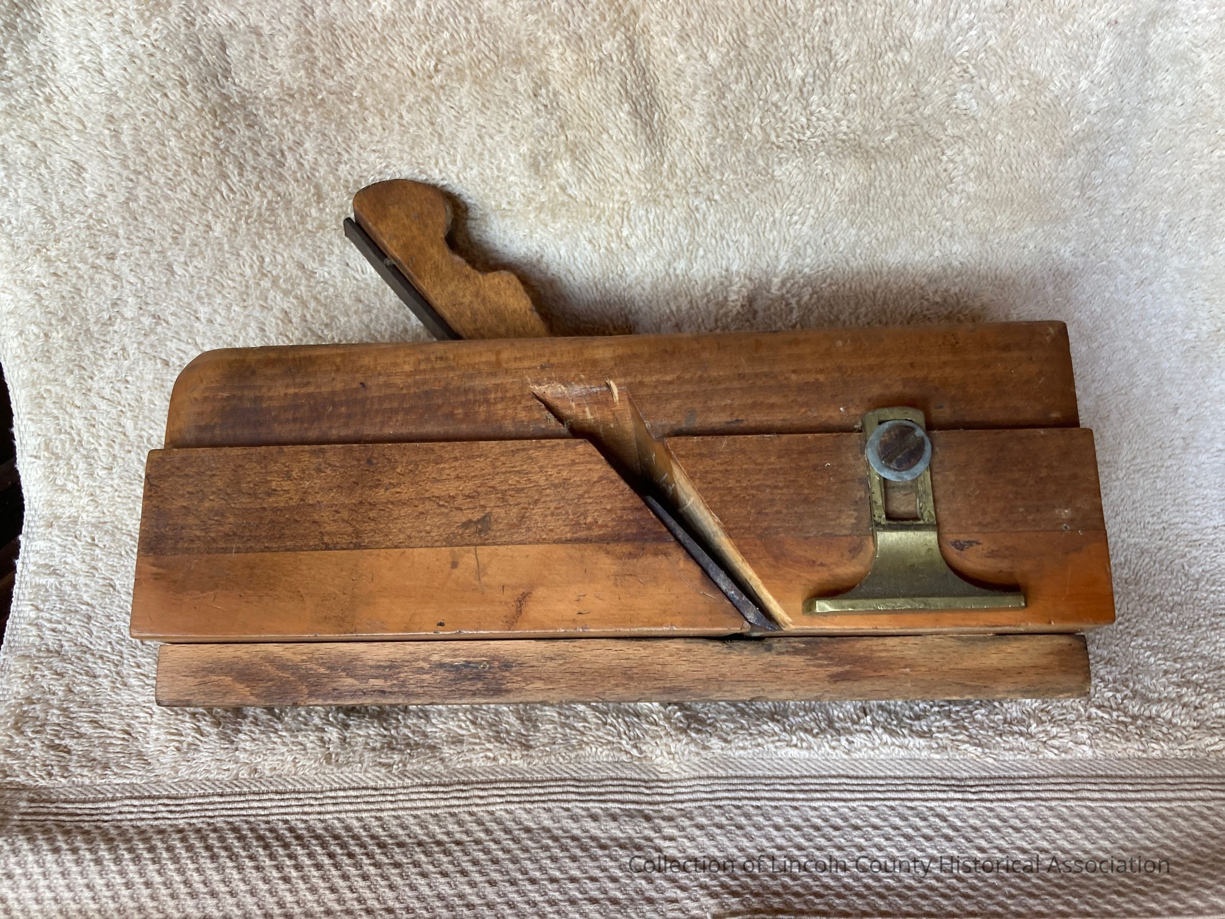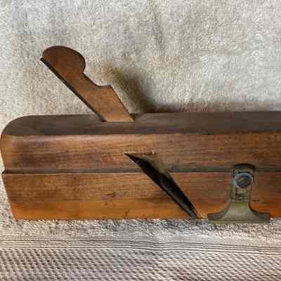 Beech wood, iron, and brass rabbet plane with its adjustable fence. Its iron blade ends with a steel cutting edge.