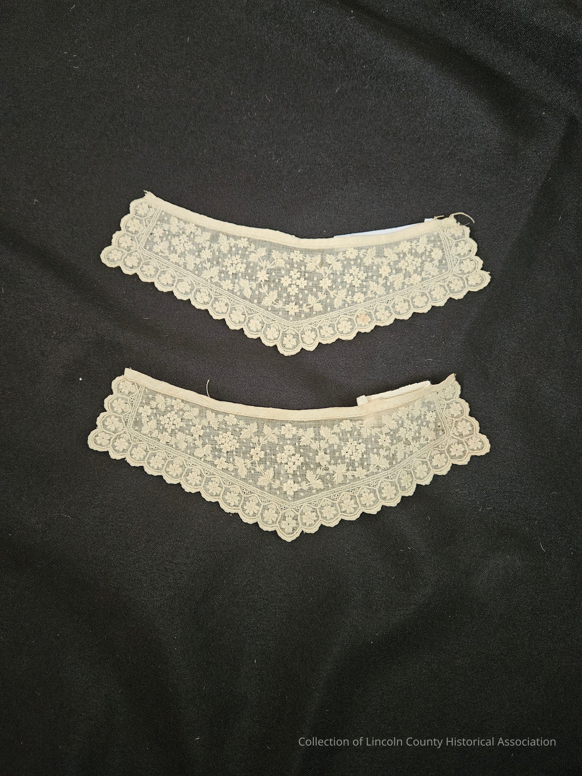 Two white cotton cuffs with floral and dot embroidery. Scalloped edges.Clothing/Dress/Costume Details
