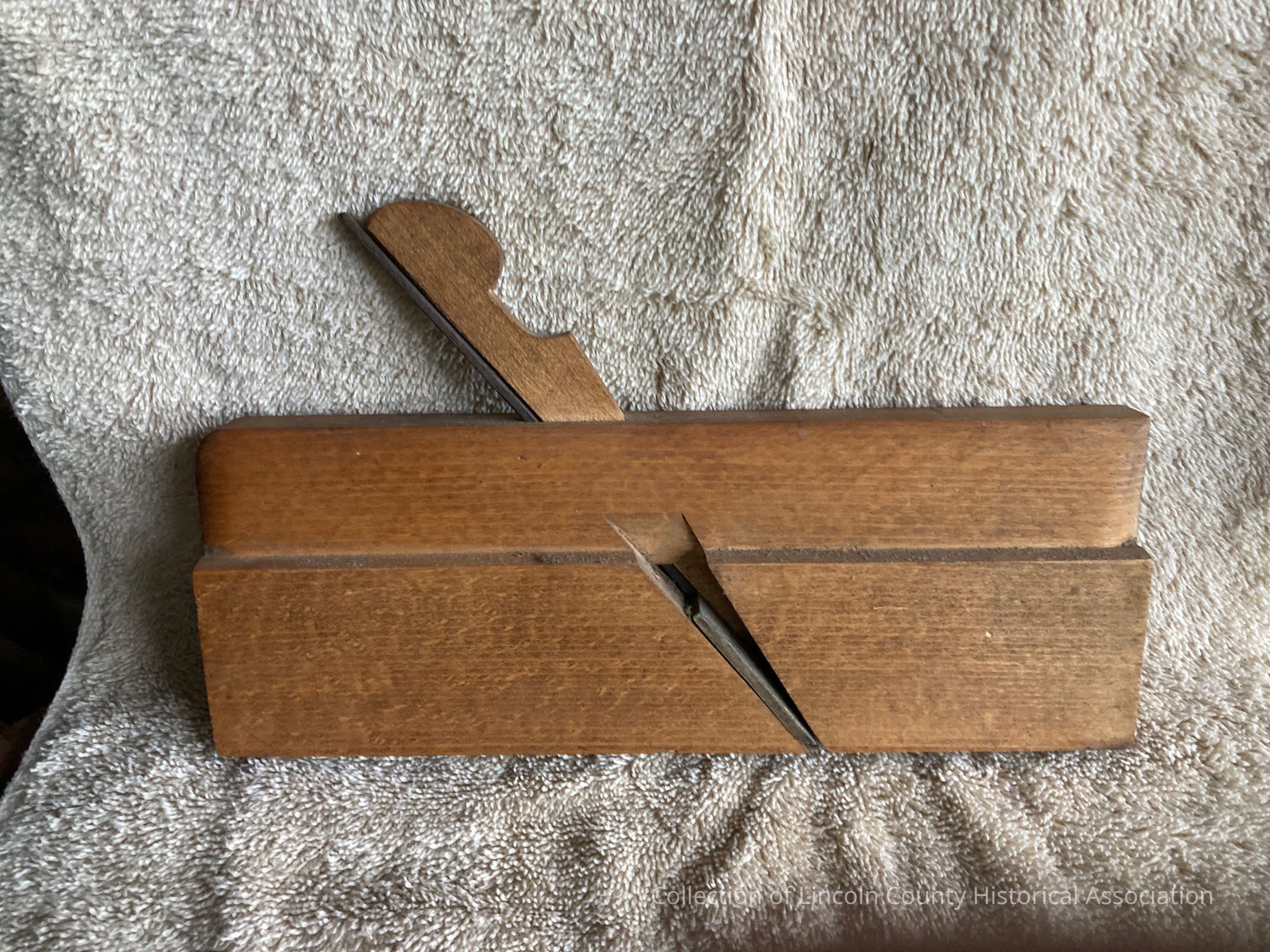 Beech wood hollow convex moulding plane designed for a non-symmetrical profile. Its iron blade ends with a steel cutting edge.Made/Created