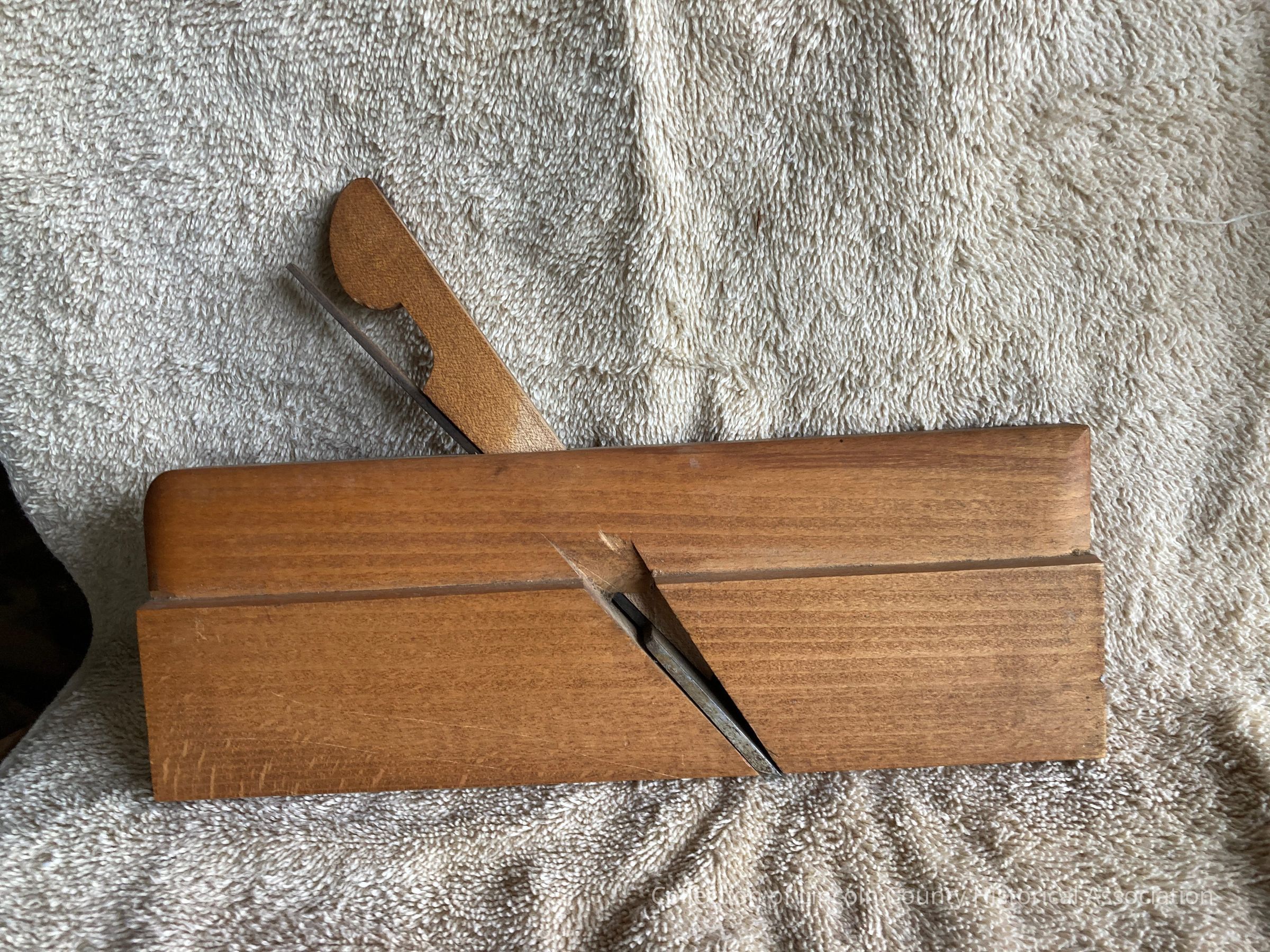 Beech wood hollow concave moulding plane. Also referred to as a "round plane." Its iron blade ends with a steel cutting edge. Wooden block tapers to a modified round.Made/Created