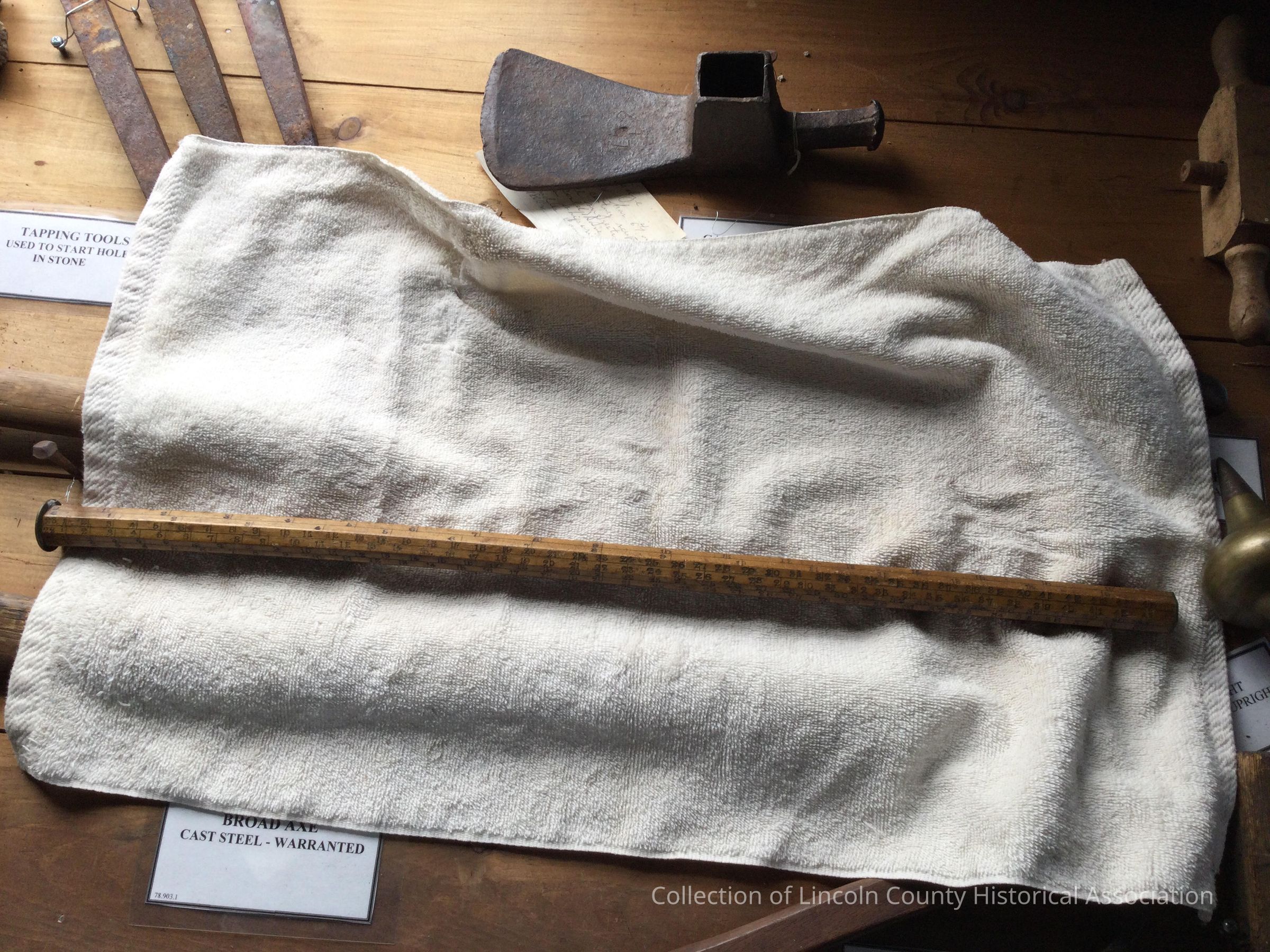Wooden log scale (or measure) with brass caps. Incised with marks to measure board feet.