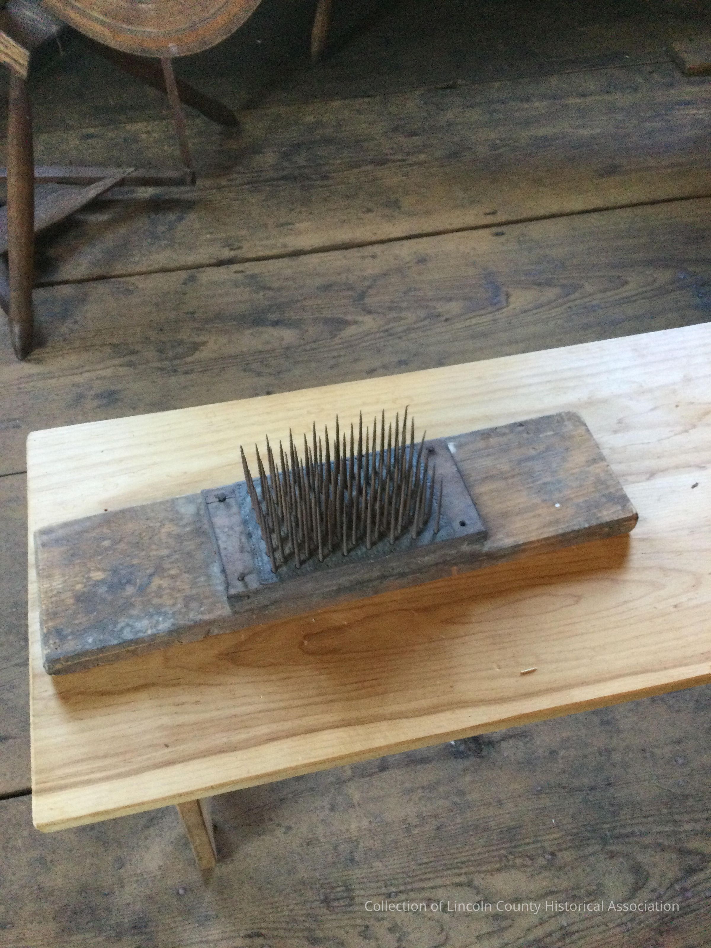 Rectangular set of sharp spikes set onto a wooden board.Made/Created