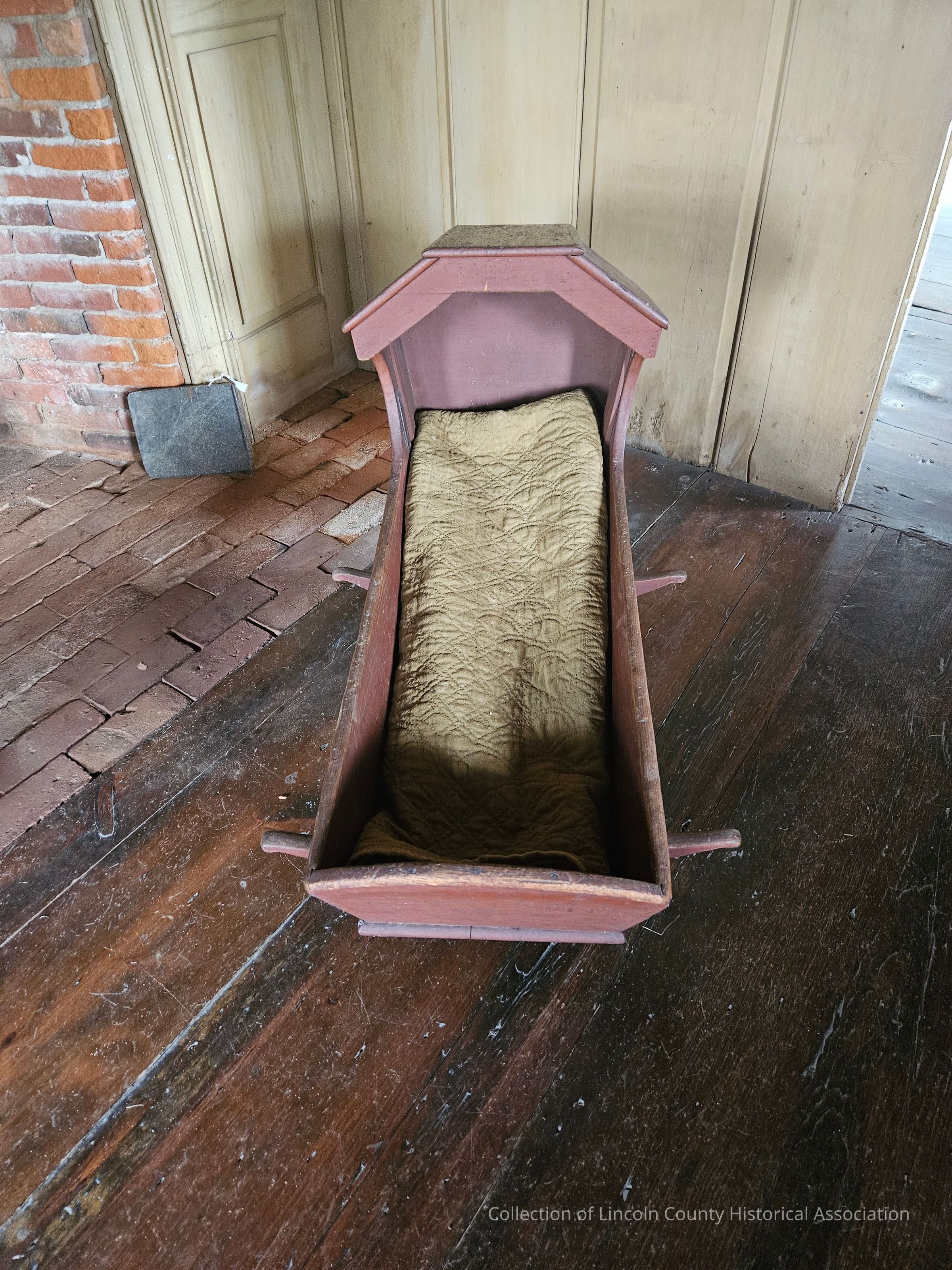 Notes: CHH archives: CHH collection (paper, records found in house by Jay Robbins), typed description: "The Chapman-Hall House 1754" under yellow room, . . ."furnishings: only the cradle (by the fireplace) was found in the house."