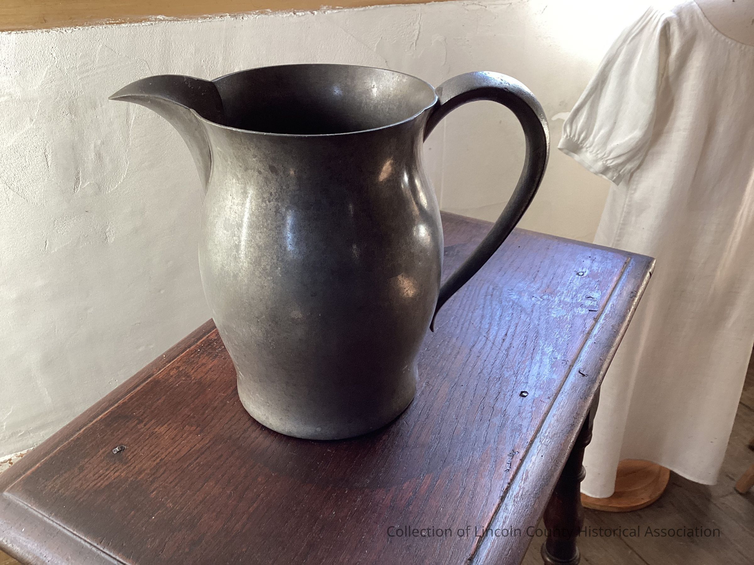 Large pewter pitcher with outward flaring top and spoutInscription/Signature/Marks