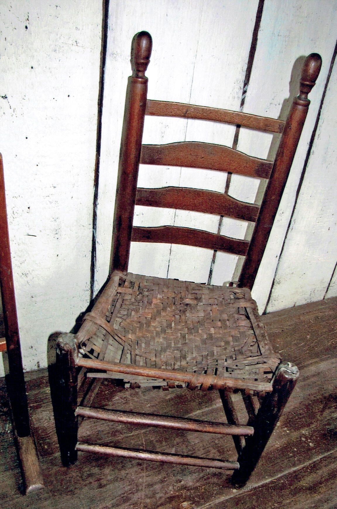 Notes: Severe wear at top of frontposter. Upper splat is probable replacement. Three lower splats have loss at upper edges. Splint seat severely worn.