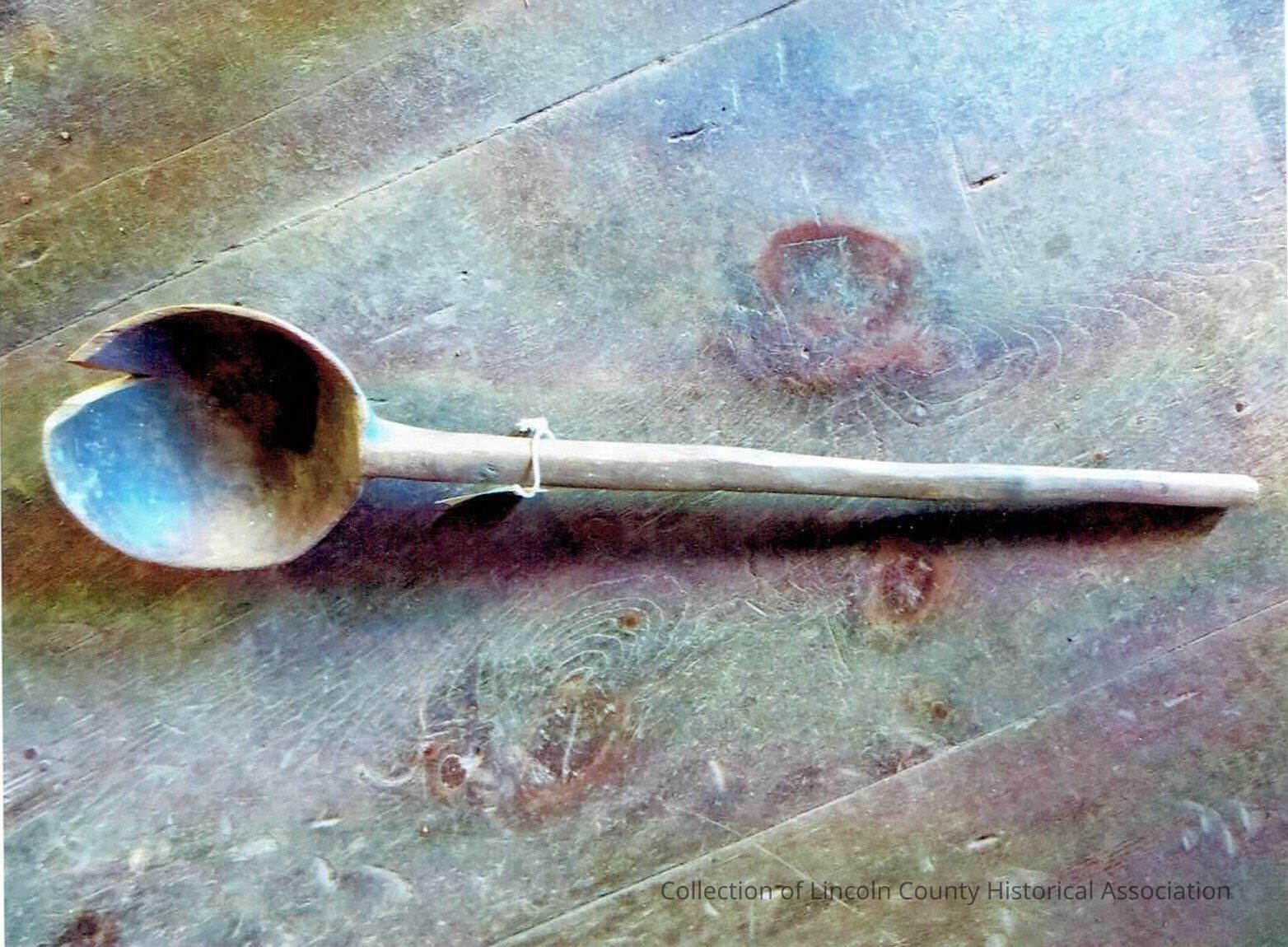 Hand-carved ladle - primitive, tapered, piece broken out of bowlDimensions