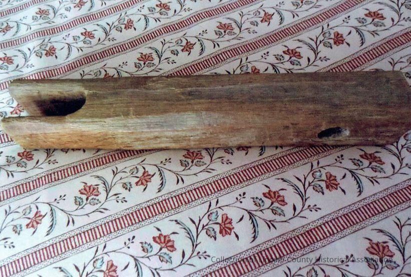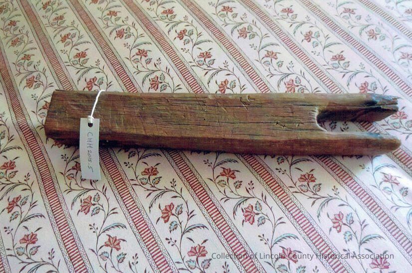 Wooden bedkey. Missing part. Hole in one end, 8.9cm notch in the other.Dimensions