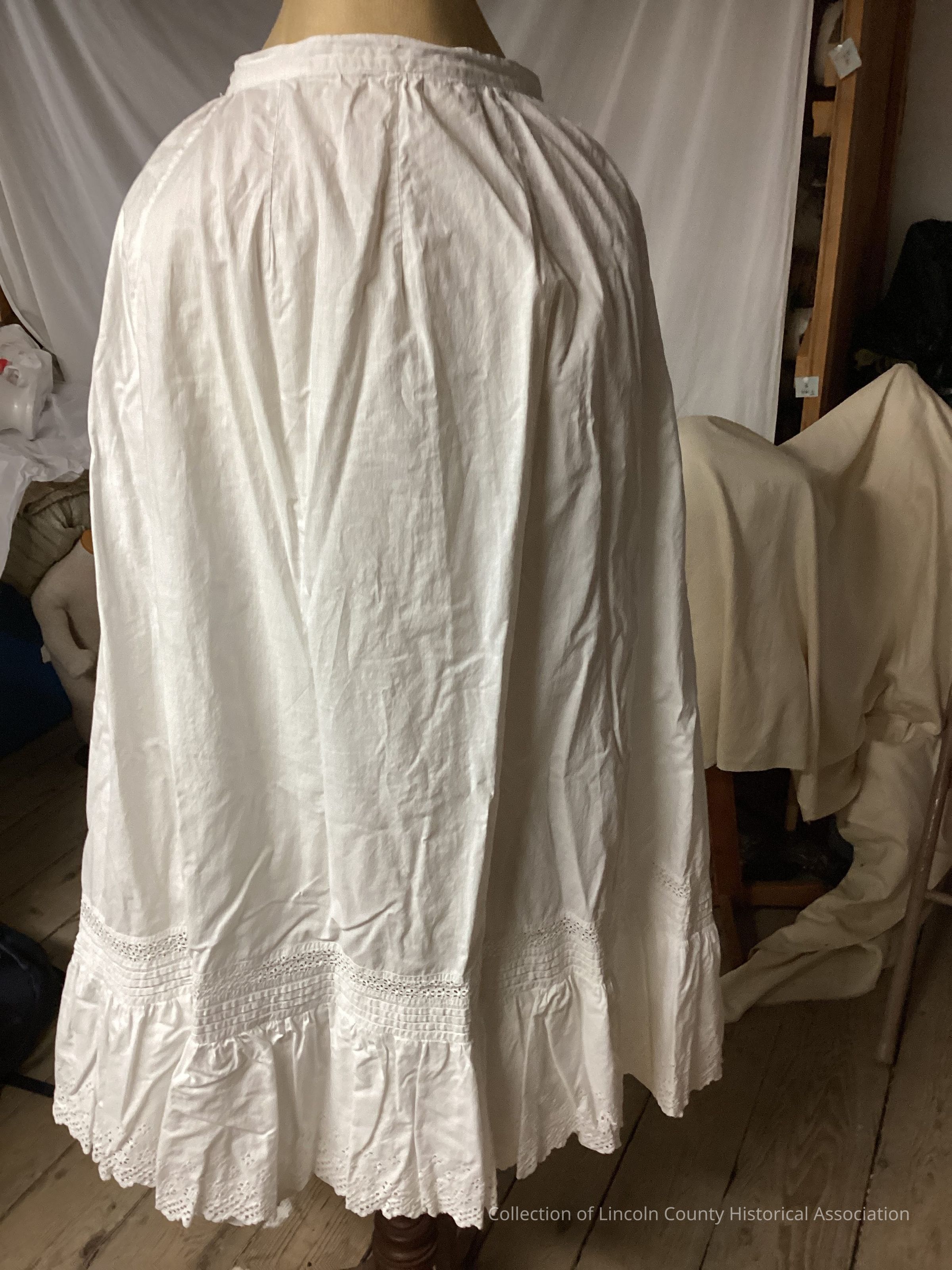 White cotton women's petticoat. Openwork at bottom with pleats.Clothing/Dress/Costume Details
