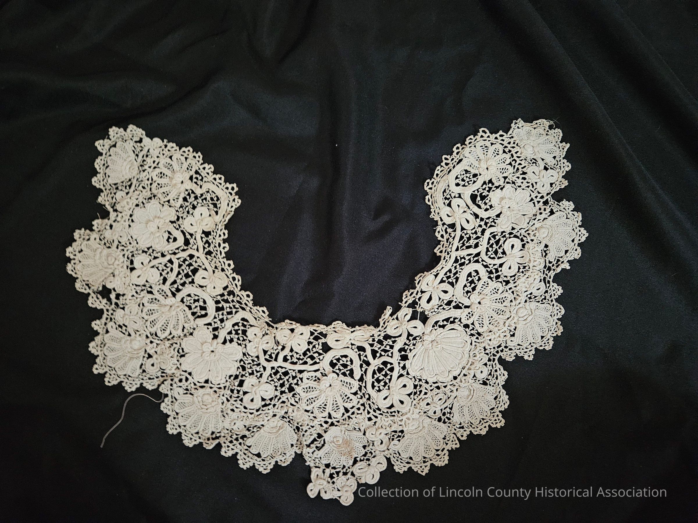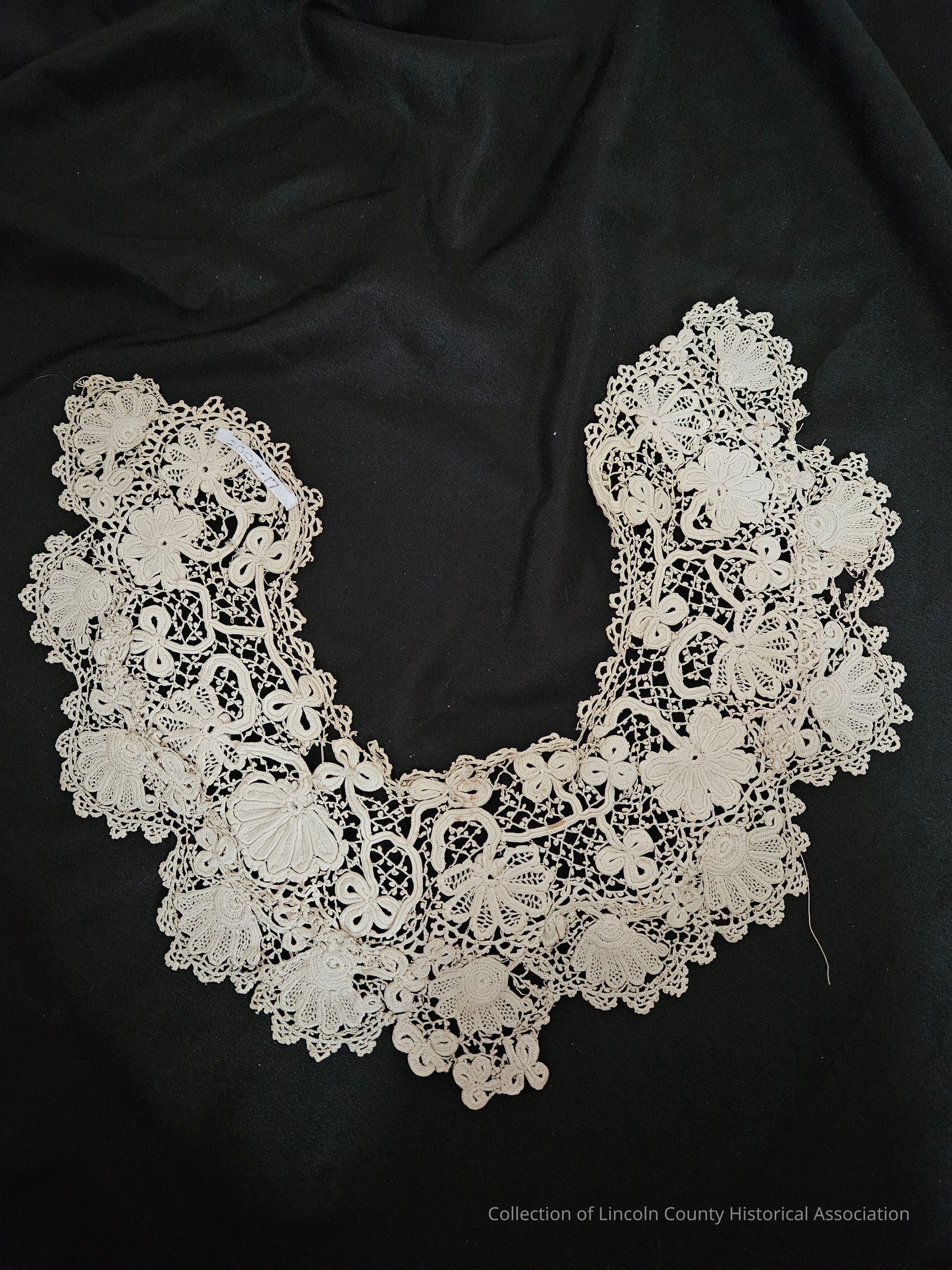 Heavy Irish crocheted lace collar. Seashell pattern design and scalloped edges.