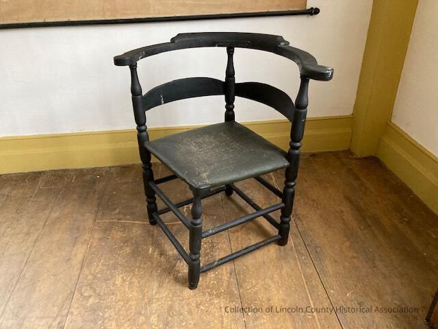 Roundabout chair in a William and Mary style. Is painted black and has turned stretchers and posts.Made/Created