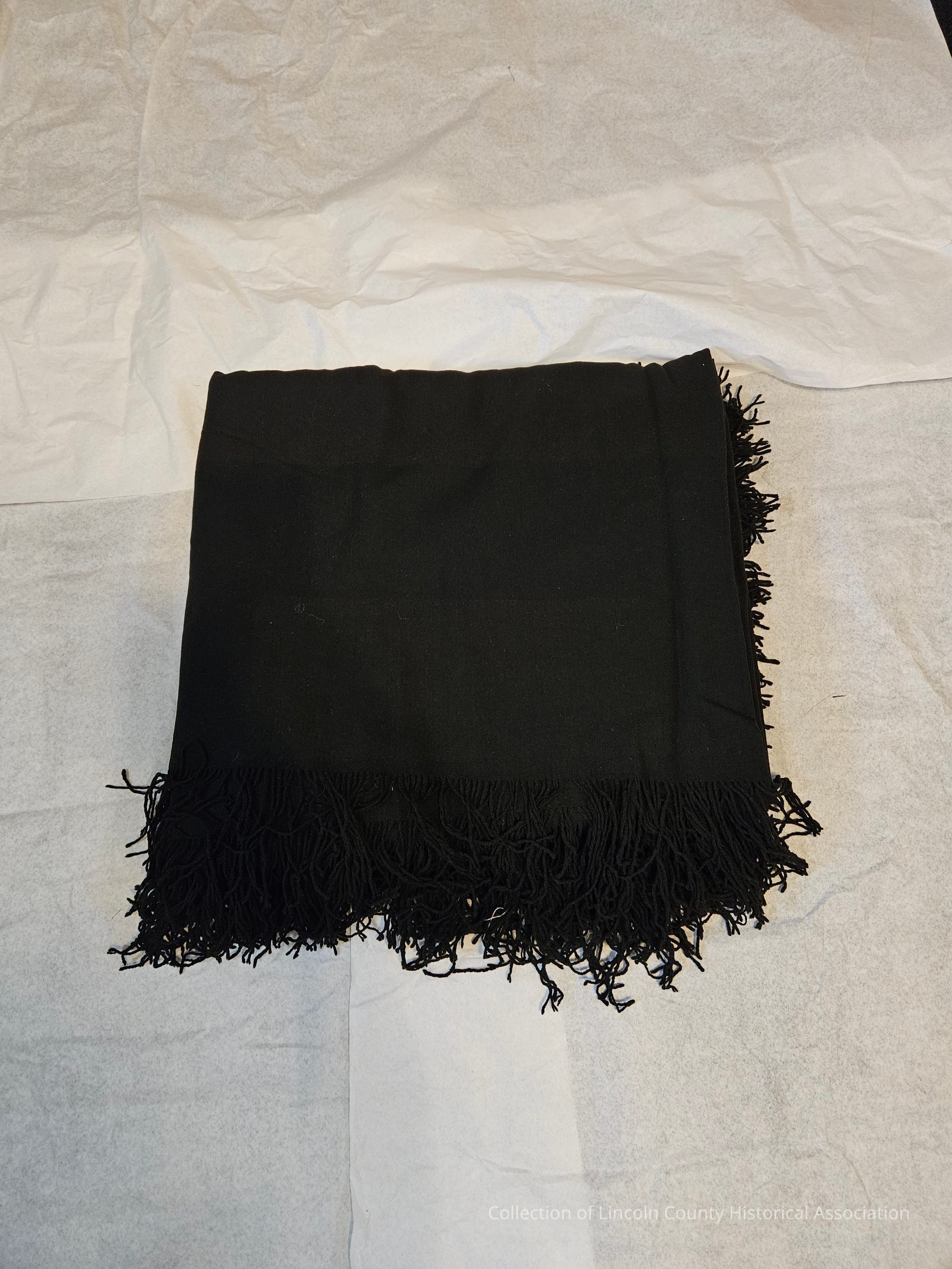 Large plain black wool shawl. Fringe around the edges.Clothing/Dress/Costume Details
