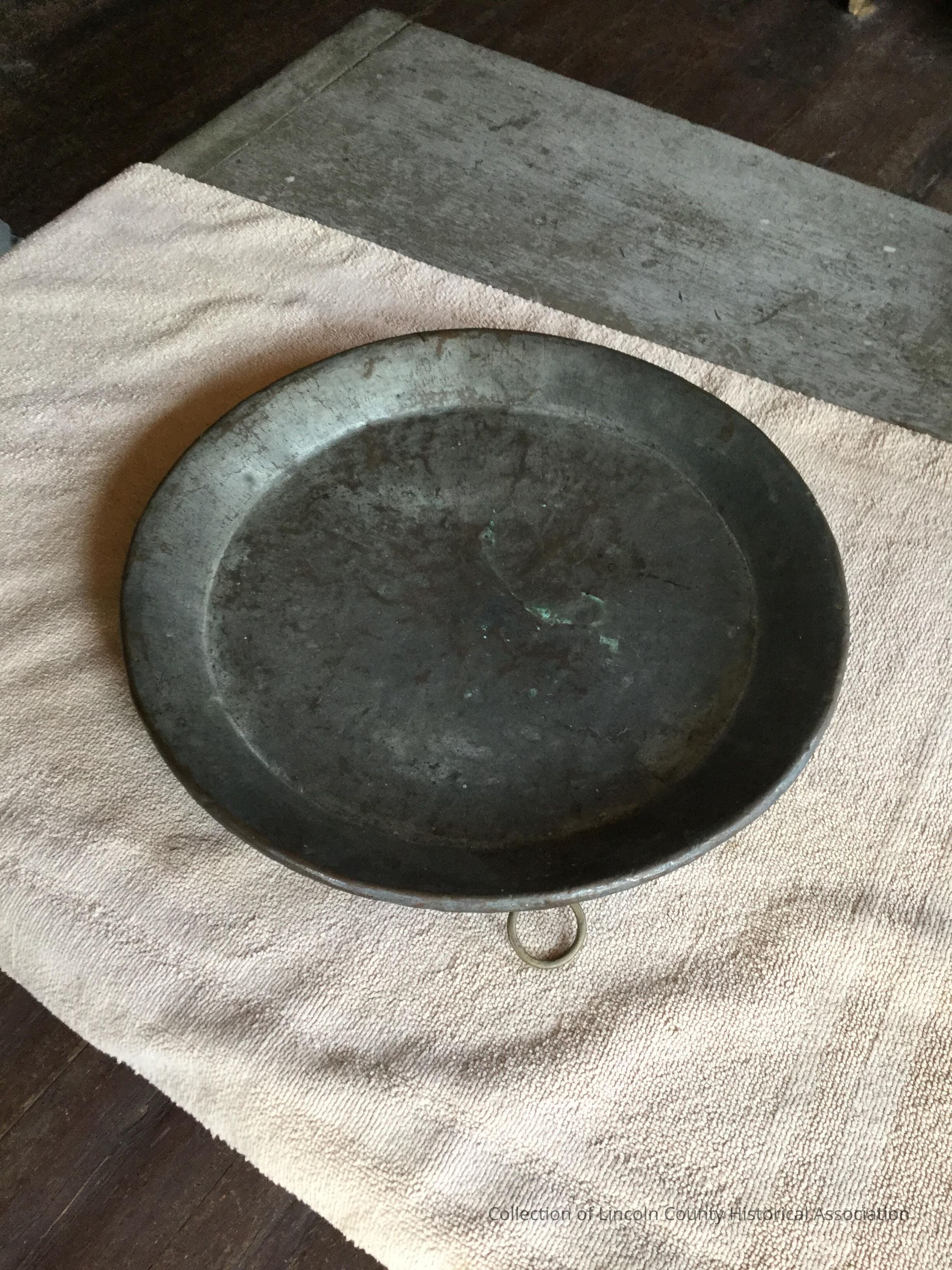 Shallow metal dish made of copper and tinned on the upper side (interior)Made/Created