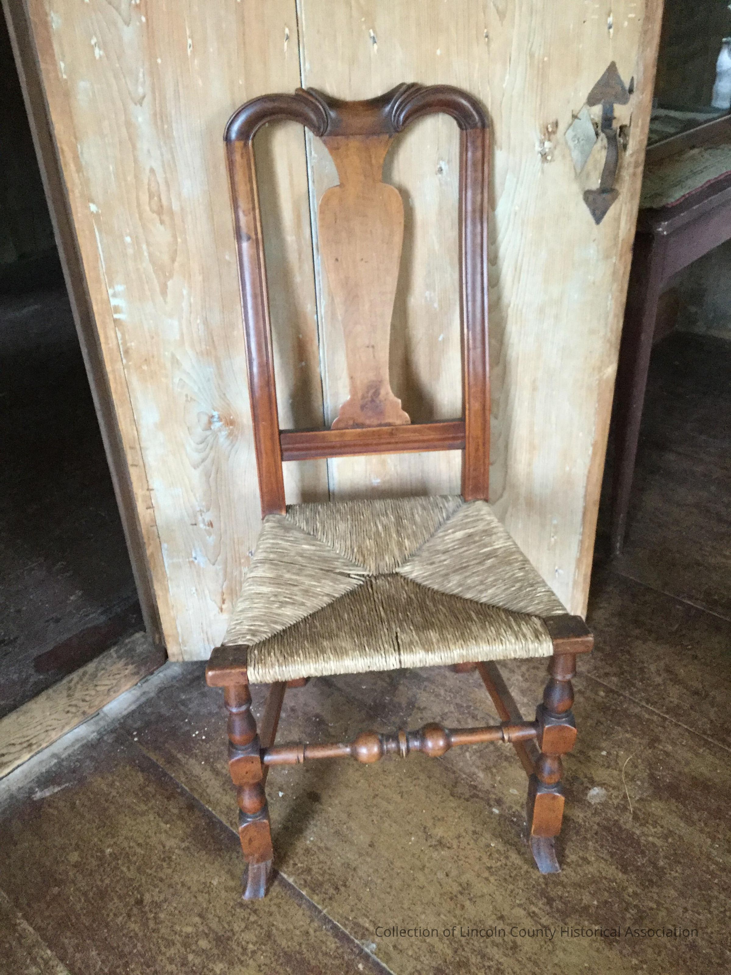 Transitional style side chair with a Queen Anne vase-shaped splat and with William and Mary Turnings including Spanish Feet. With a modern rush seat.Made/Created