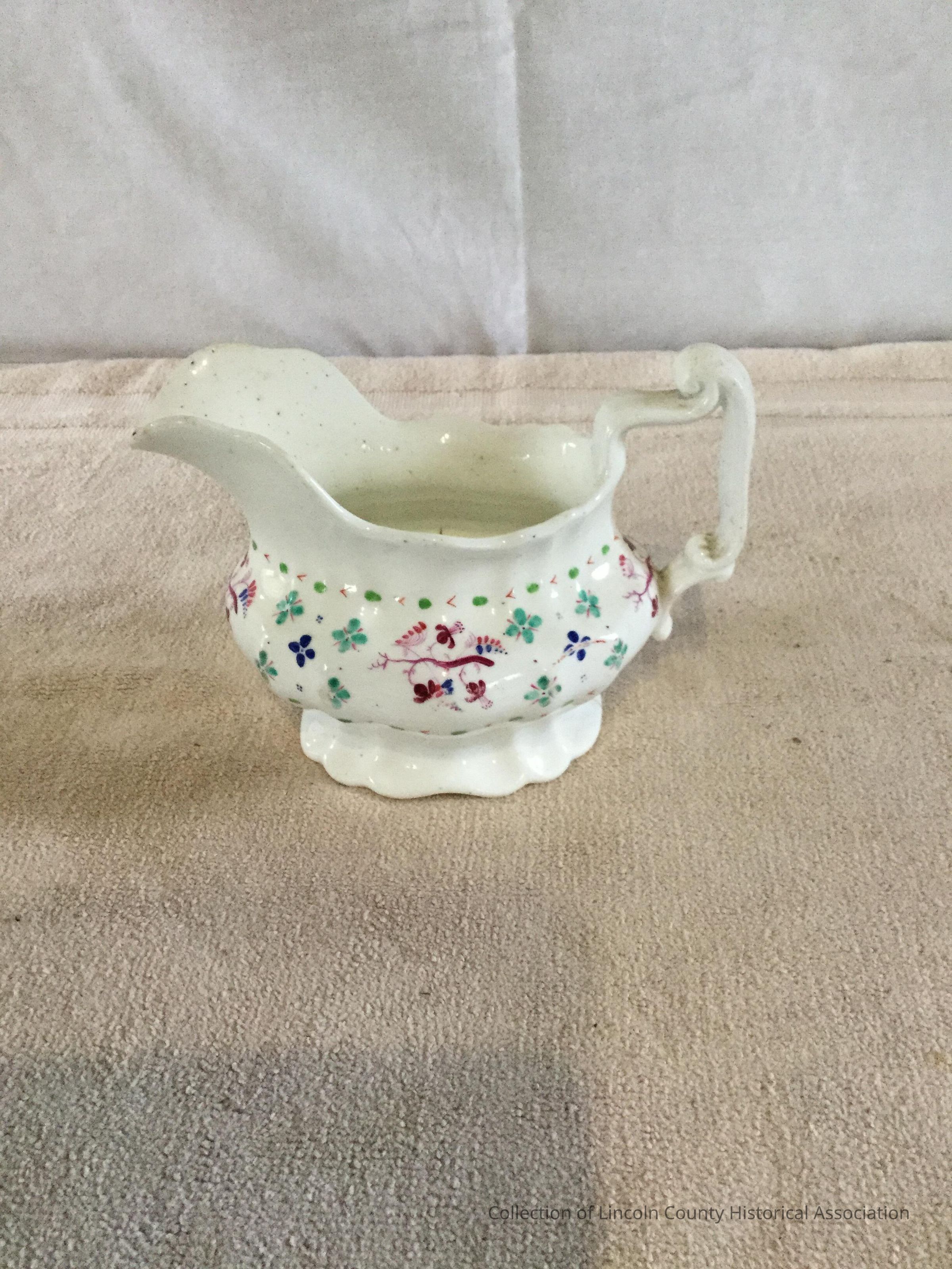 Oval cream pitcher with an elaborate scrolled handleMade/Created