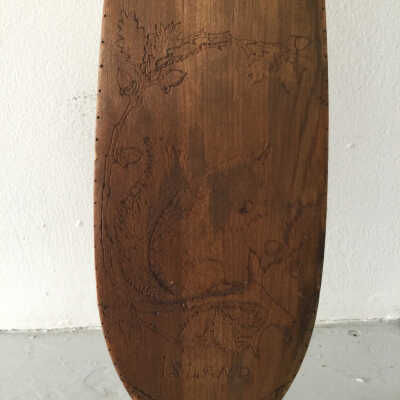 scratched image of a squirrel accompanied by lettering "ISLAND"
