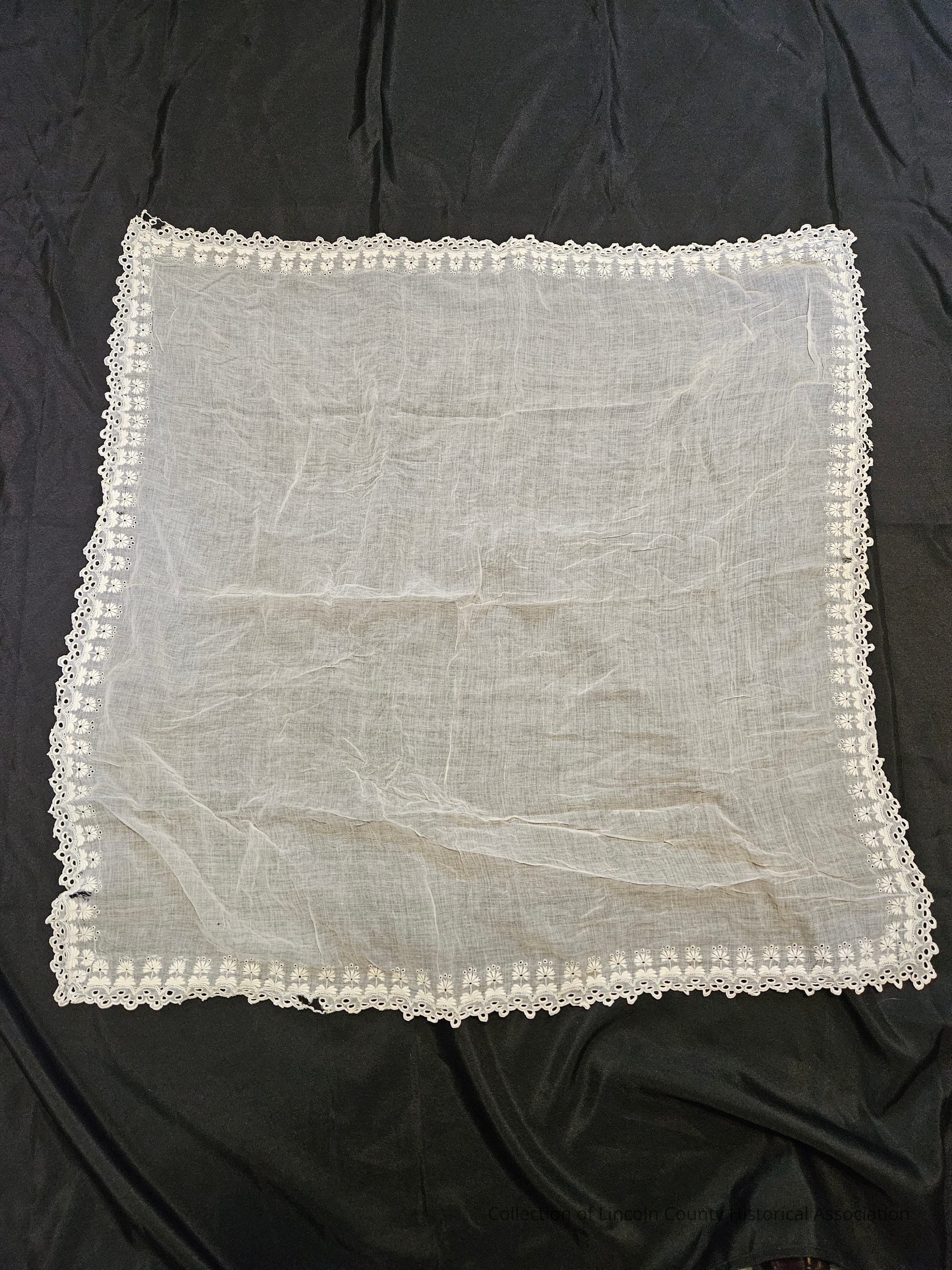 Sheer white cotton scarf/shawl. Eyelet embroidery along edges. Floral design. Rectangular in shape.Clothing/Dress/Costume Details