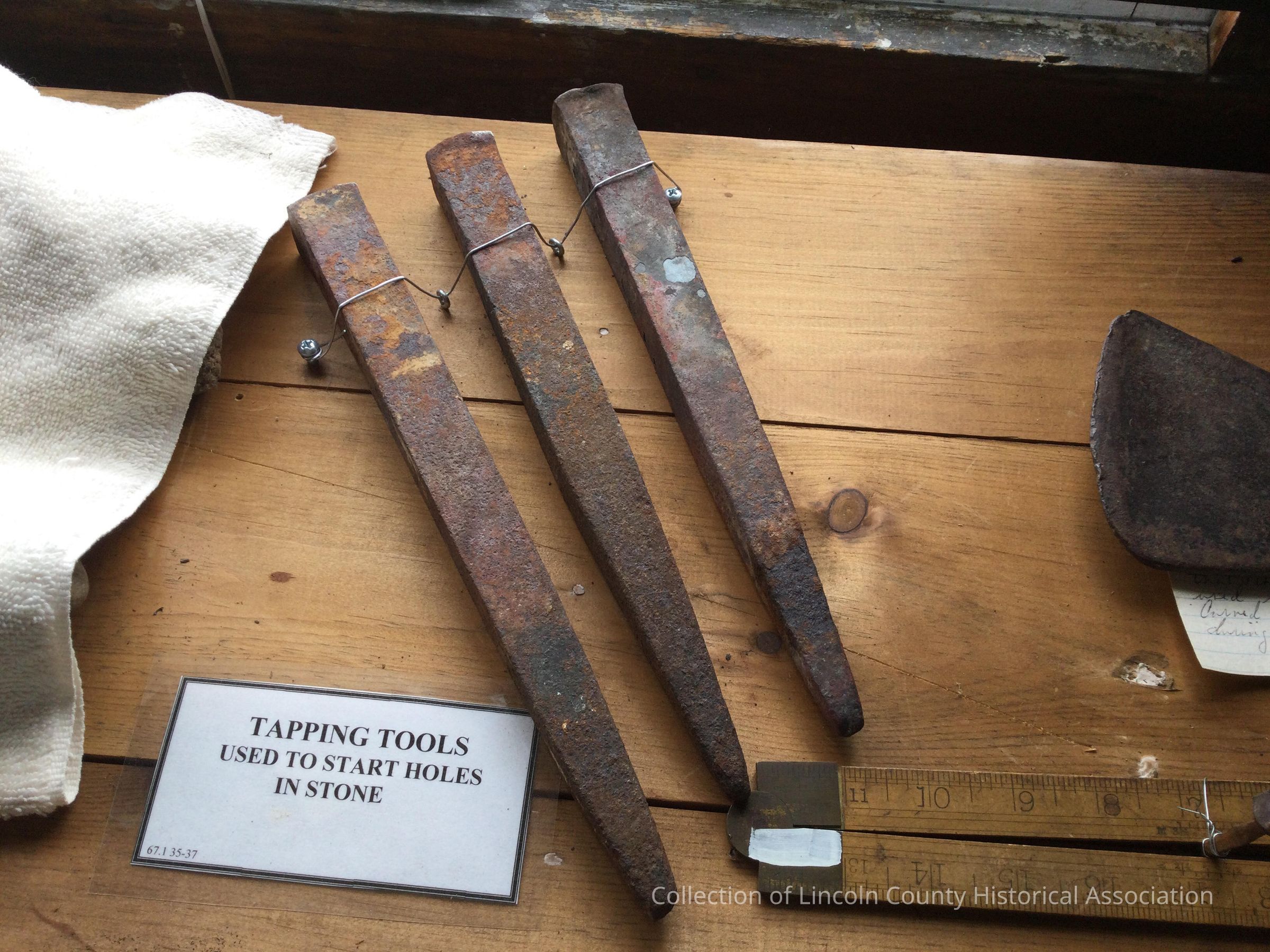 Three squared, tapering spike-like implements to initiate holes in stone being quarried. Wrought iron