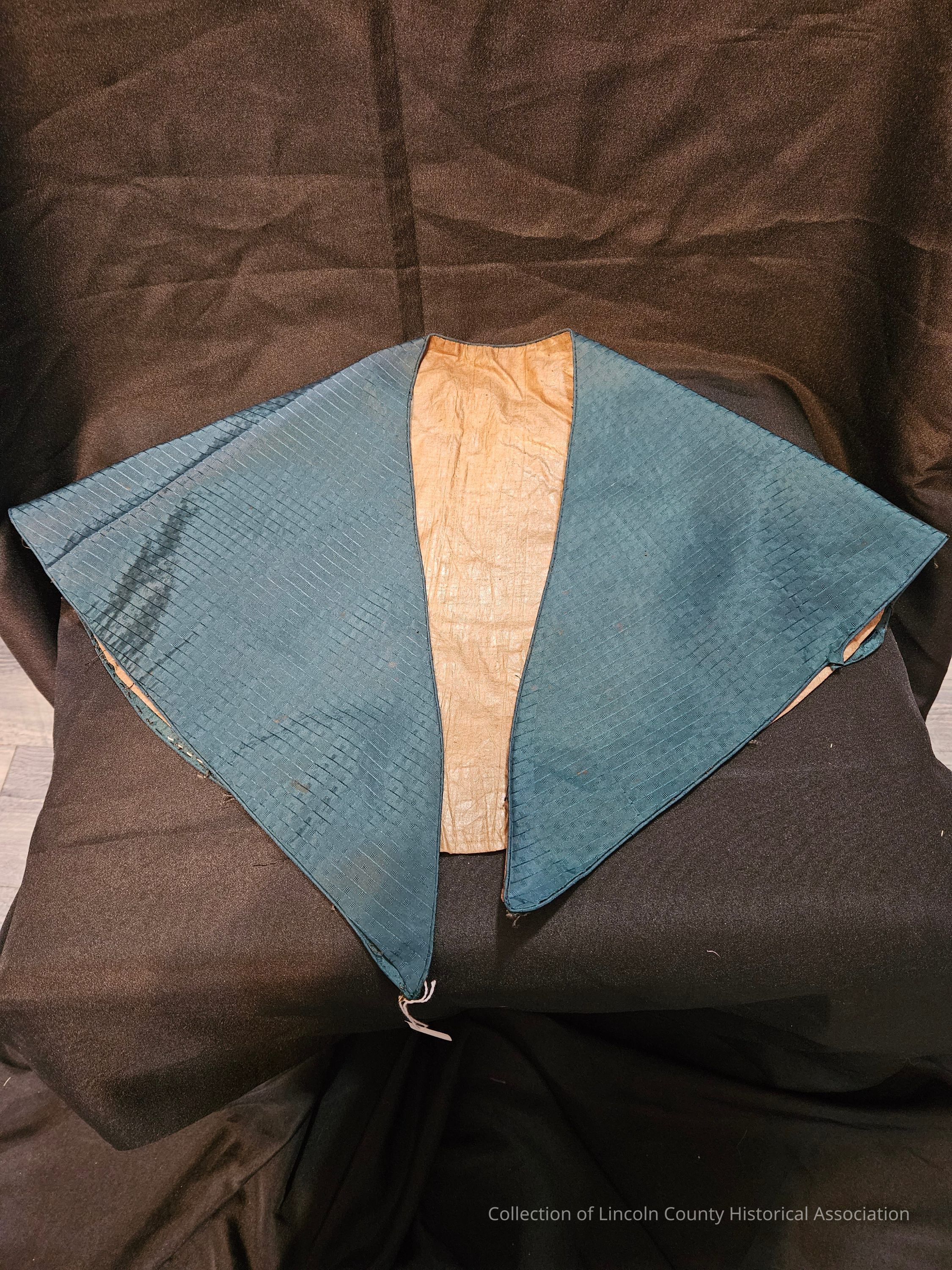 Teal silk pellerine. Line designs. All hand sewn. Tan cotton lining.Clothing/Dress/Costume Details