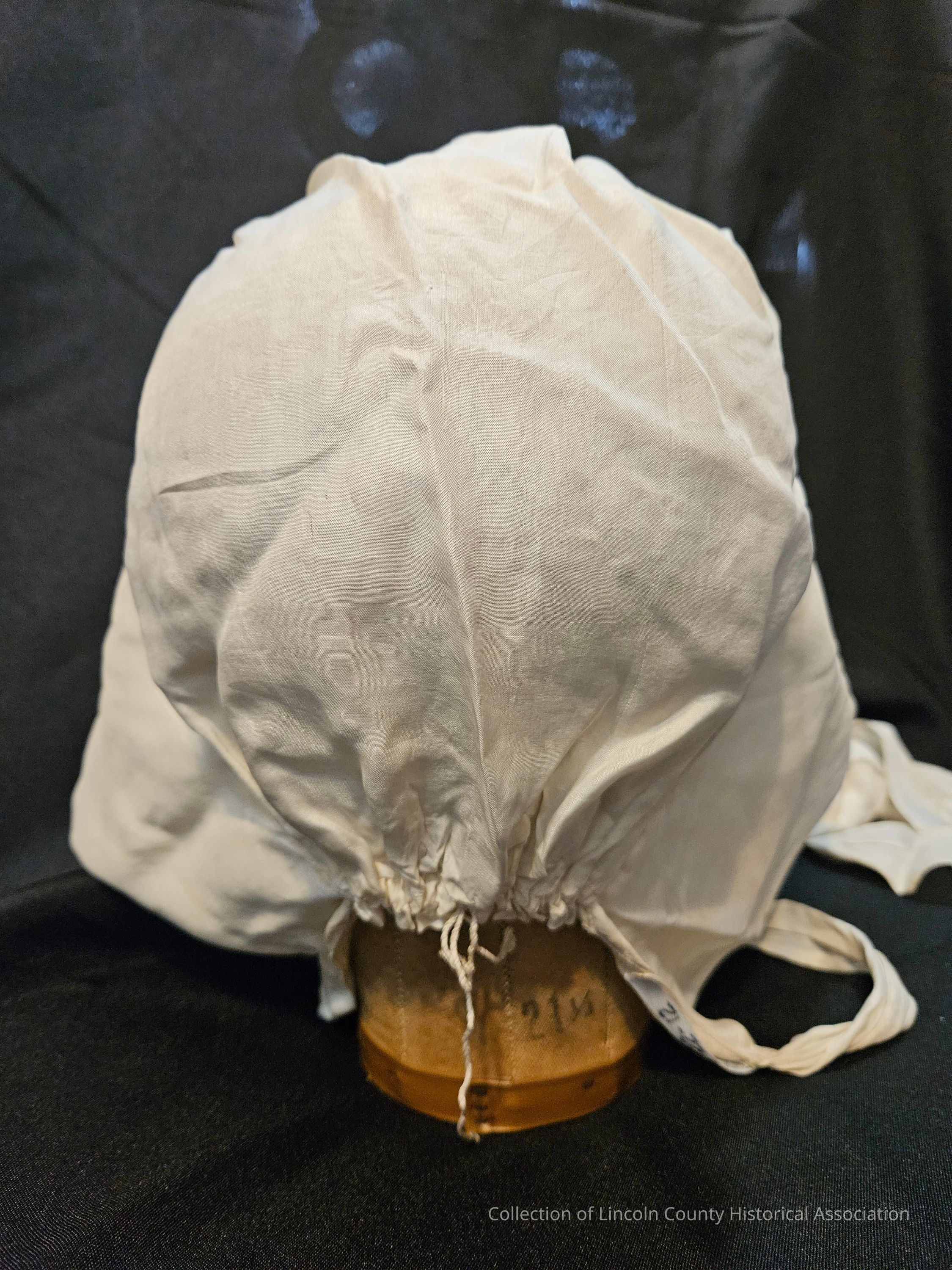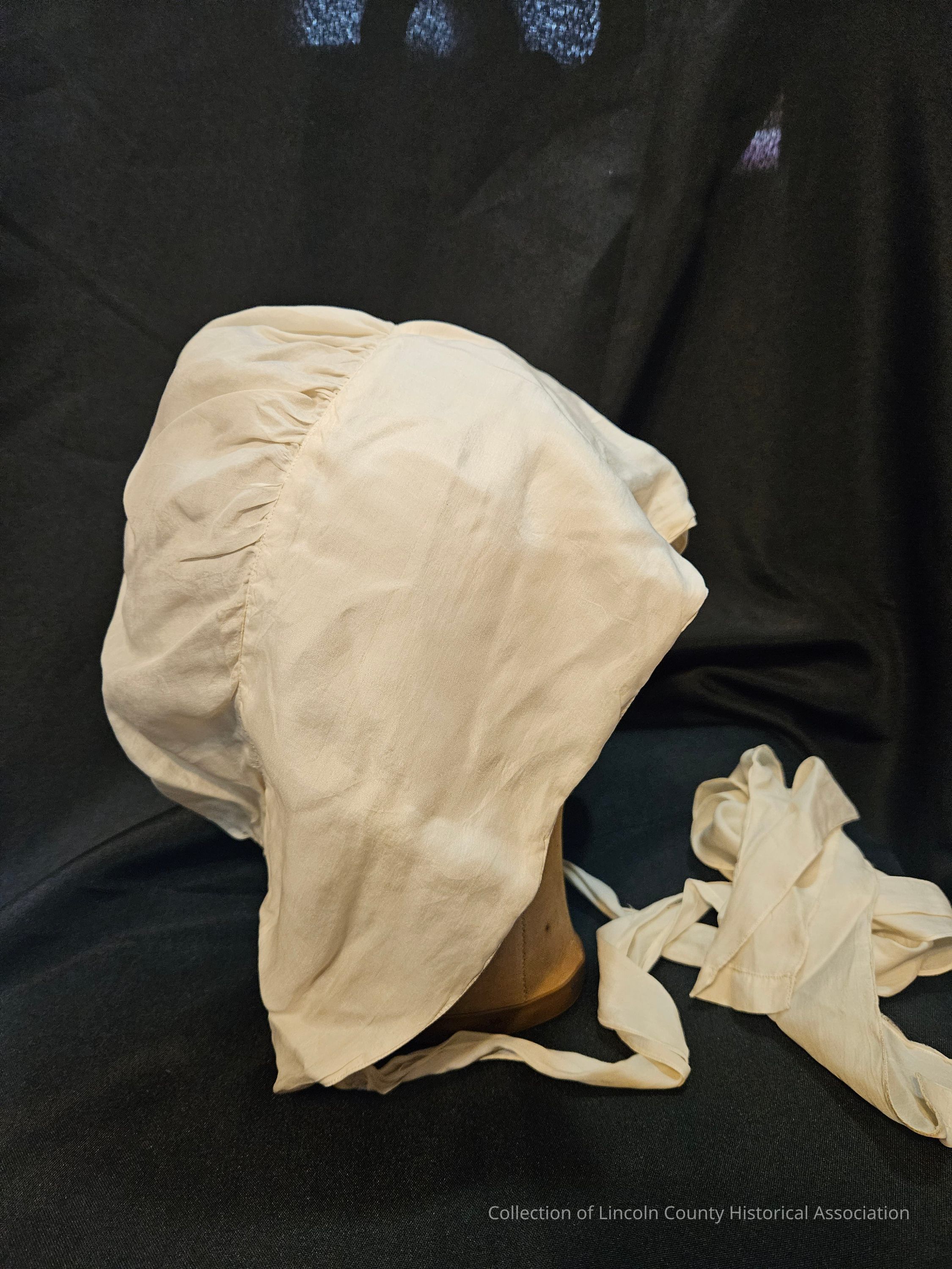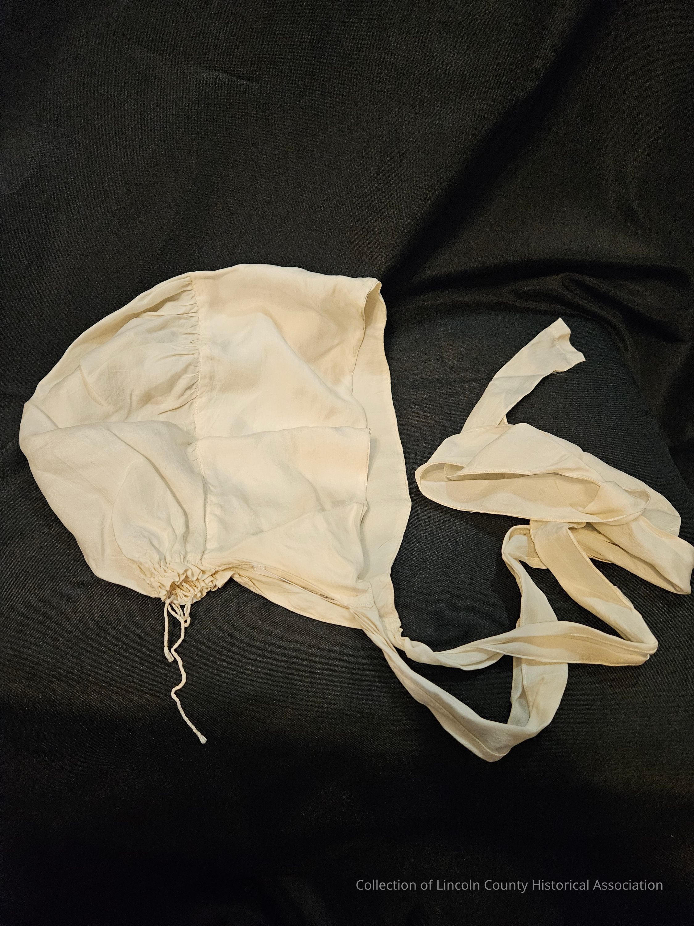 Simple silk cap with adjustable string at the bottom and two silk ties.Clothing/Dress/Costume Details
